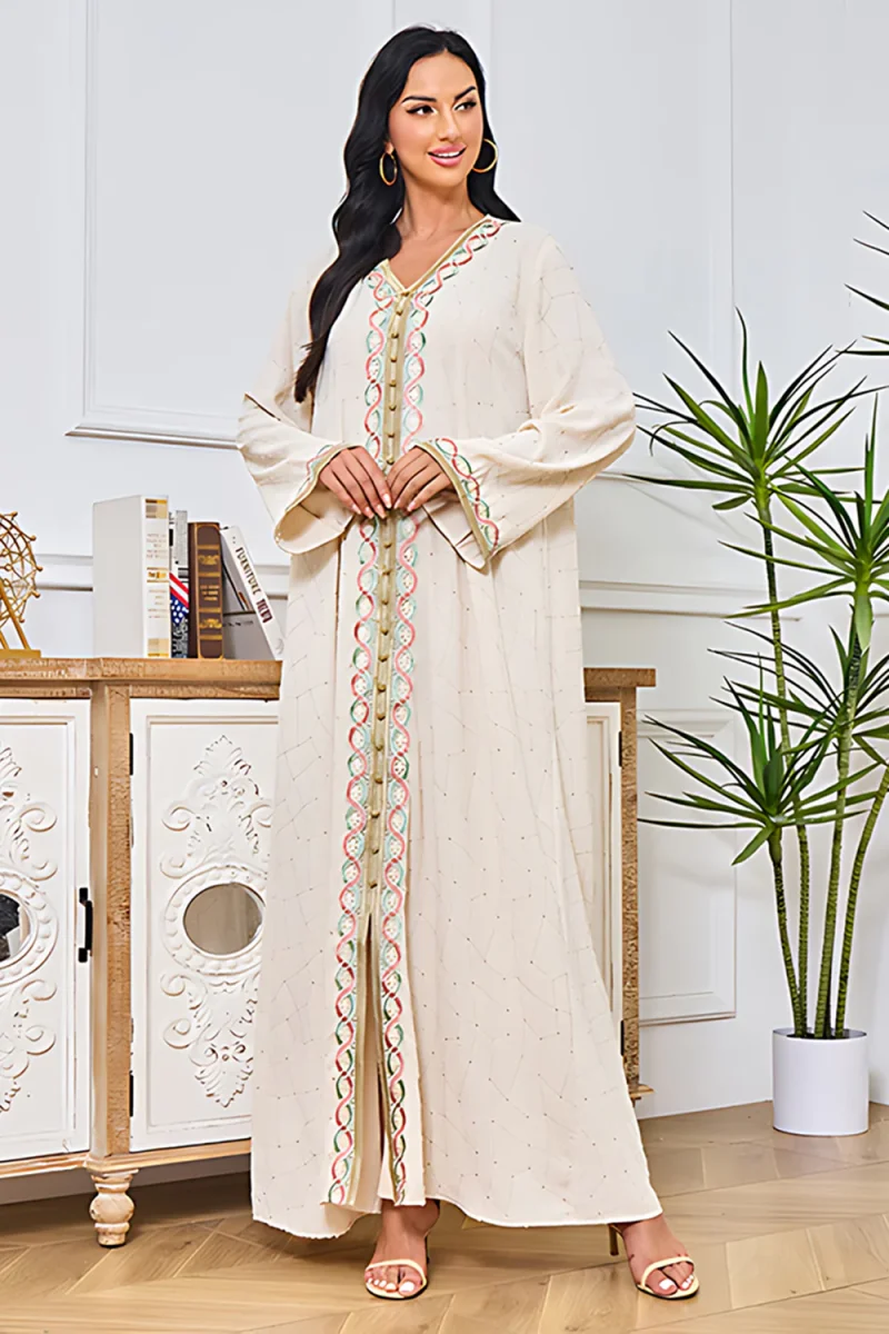 Description du produit Matériel: Polyester Ornement: Broderie,Perlé Ceinture incluse: Non Manches: Longues Si vous rencontrez le moindre problème, contactez-nous par mail : [email protected]