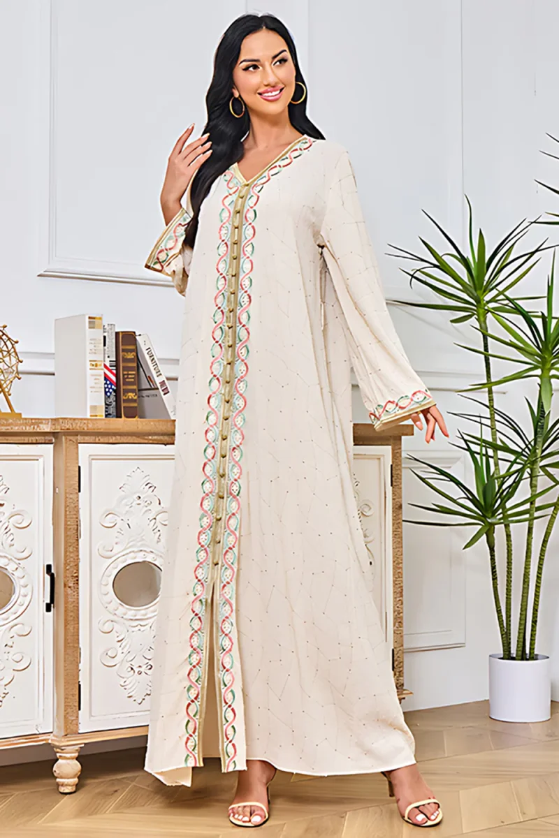 Blanc Bleu Imprimé fleuri Col en V Robe Caftan