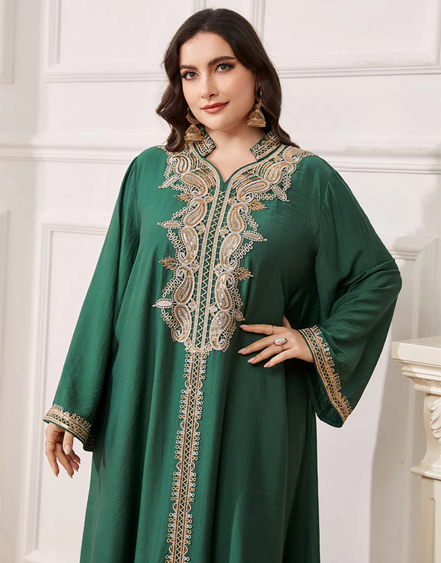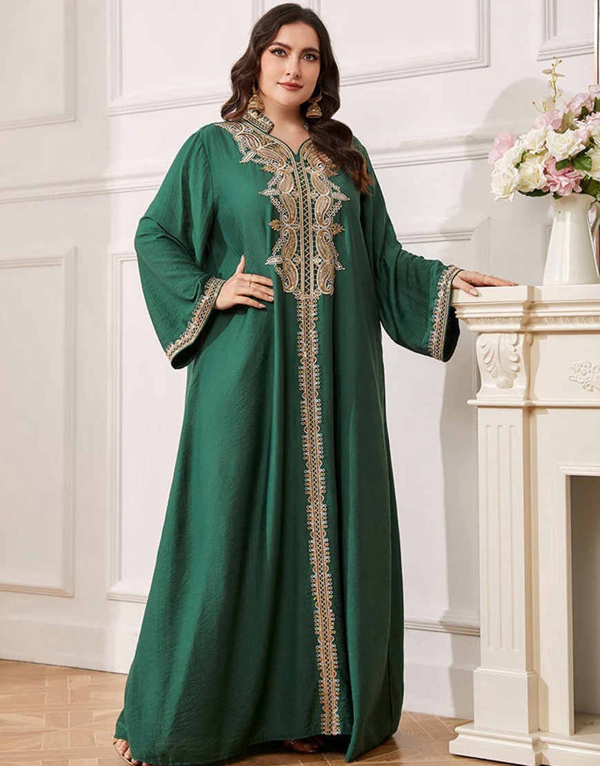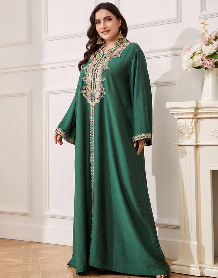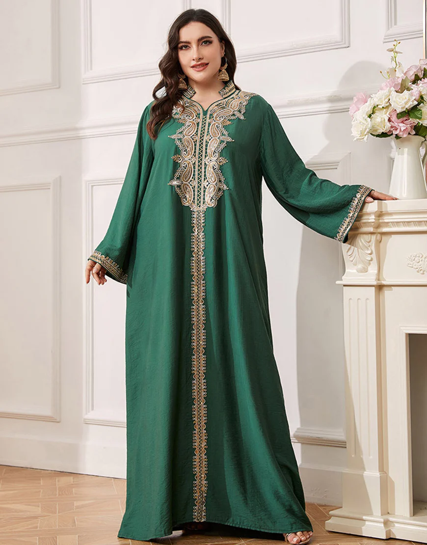 Robe caftan marocaine Abaya élégante grande taille vert foncé