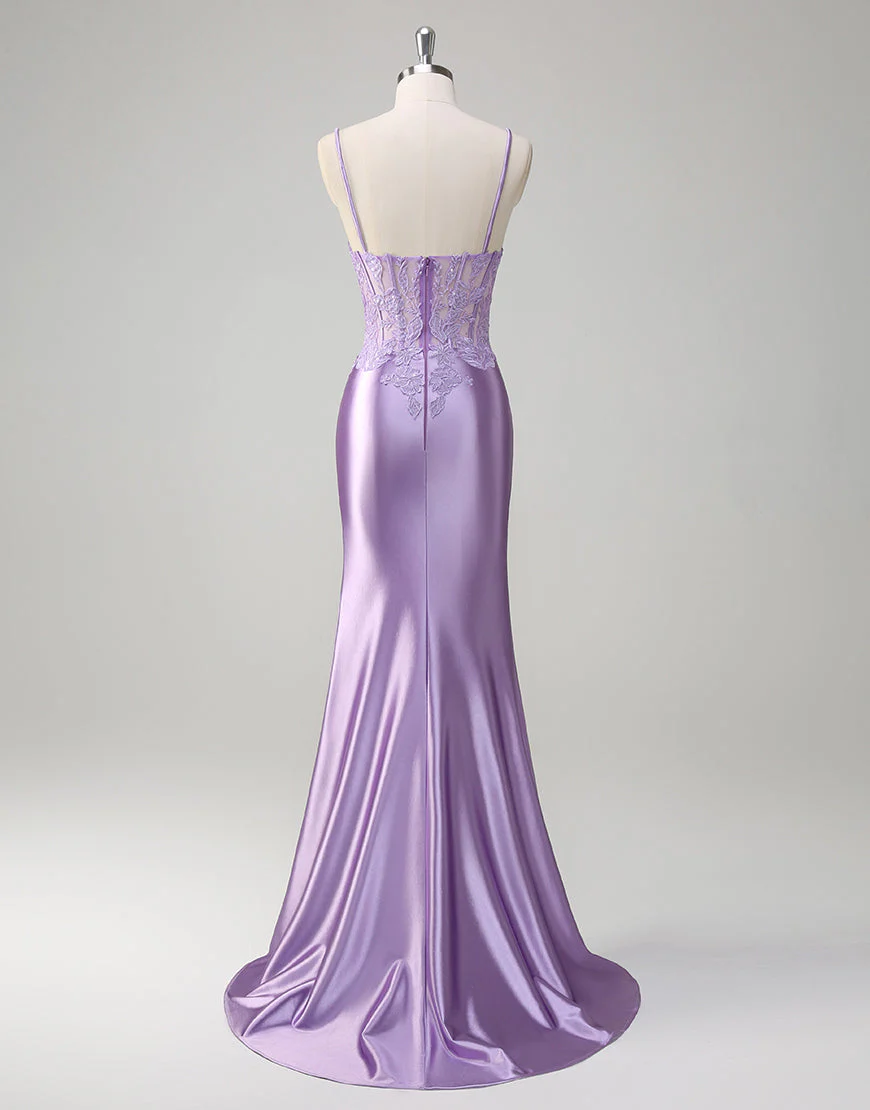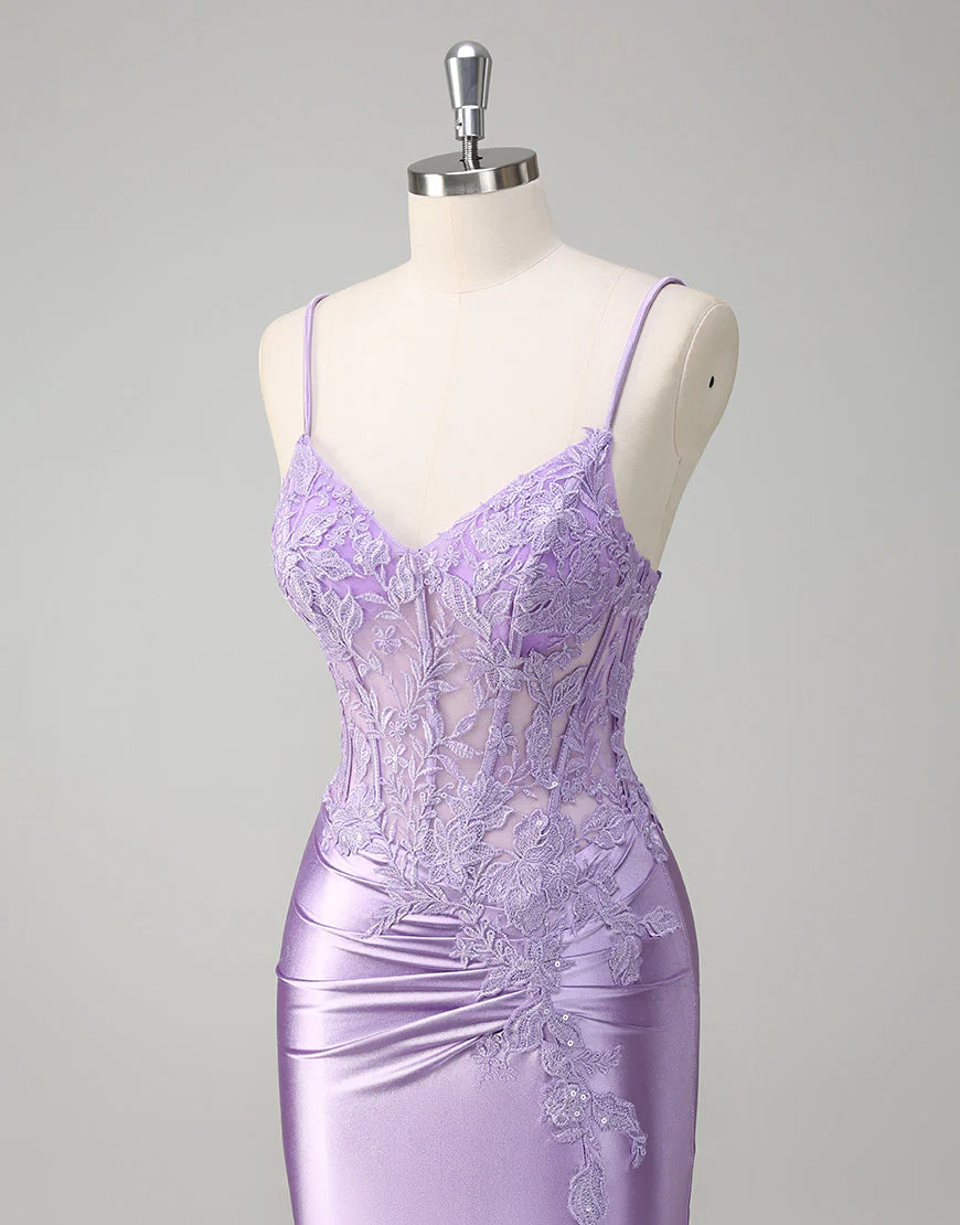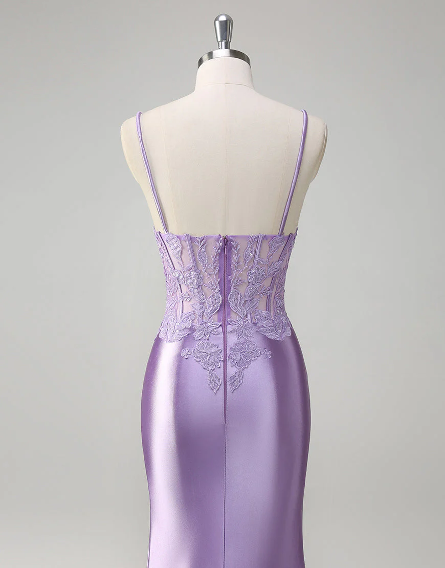 Robe de bal à appliques spaghetti avec sirène