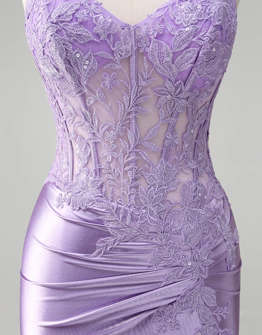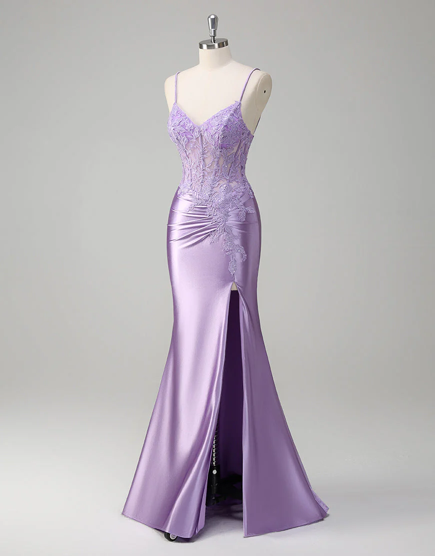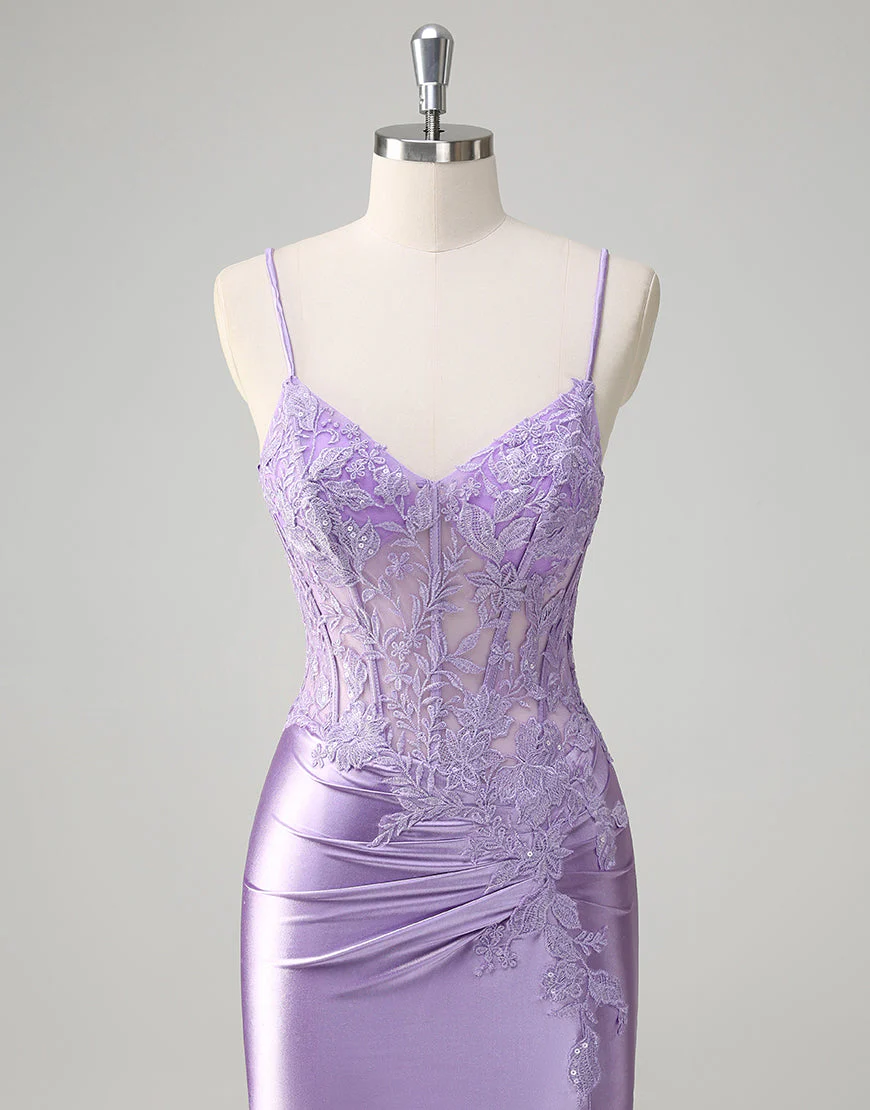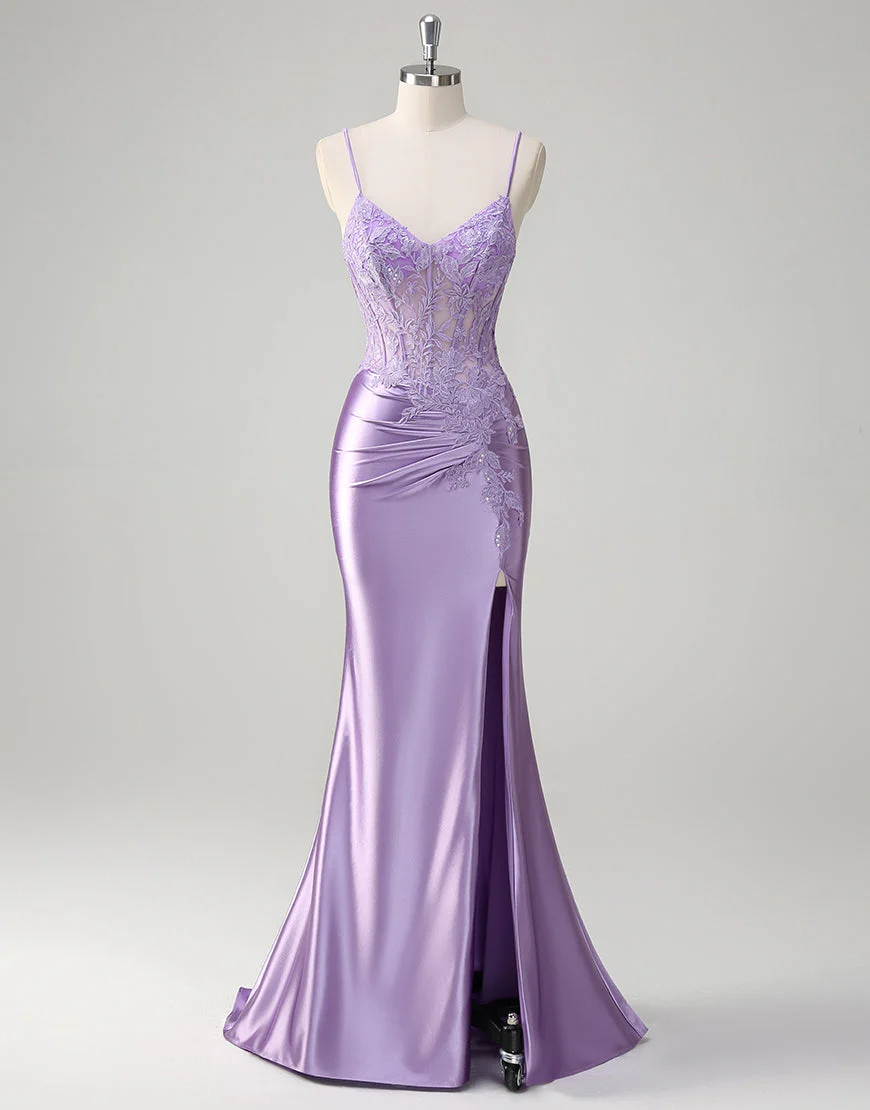 Robe de bal à appliques spaghetti avec sirène