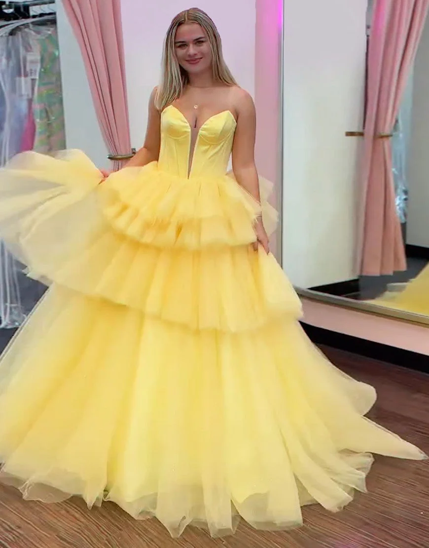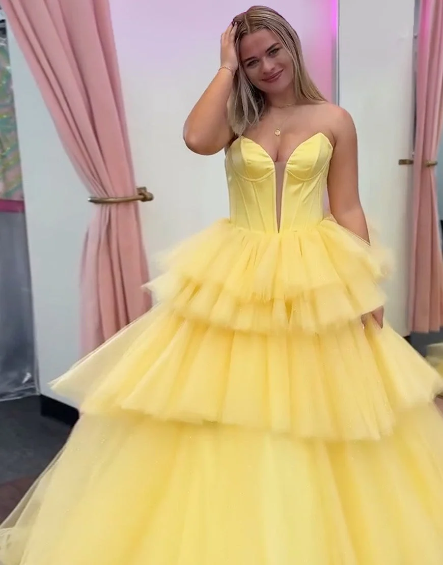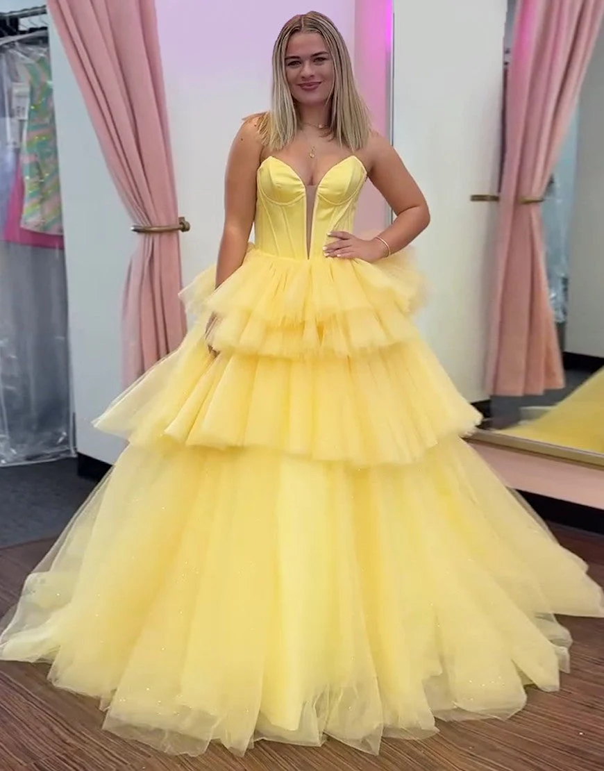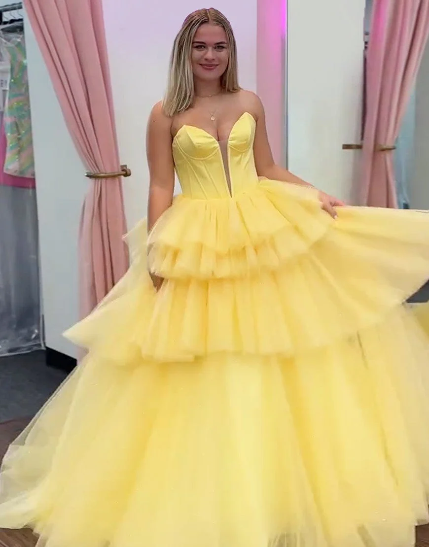 Design: Offrez-vous un look de princesse avec cette magnifique robe de bal bleue en tulle à volants en cascade. Son décolleté en cœur ajoute une touche de romantisme, tandis que sa coupe A flatte toutes les silhouettes. Sans bretelles et dos nu, elle est à la fois élégante et confortable. Un must-have pour votre prochain événement spécial.