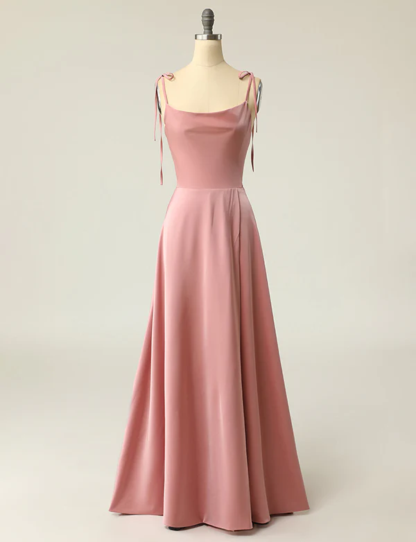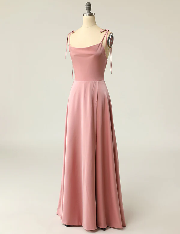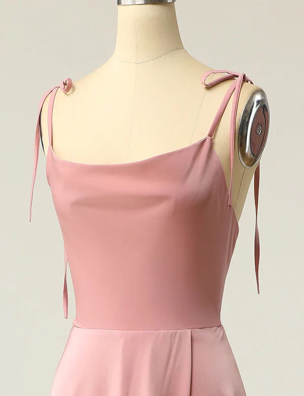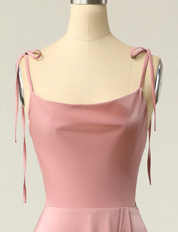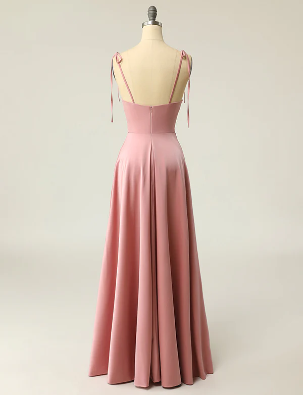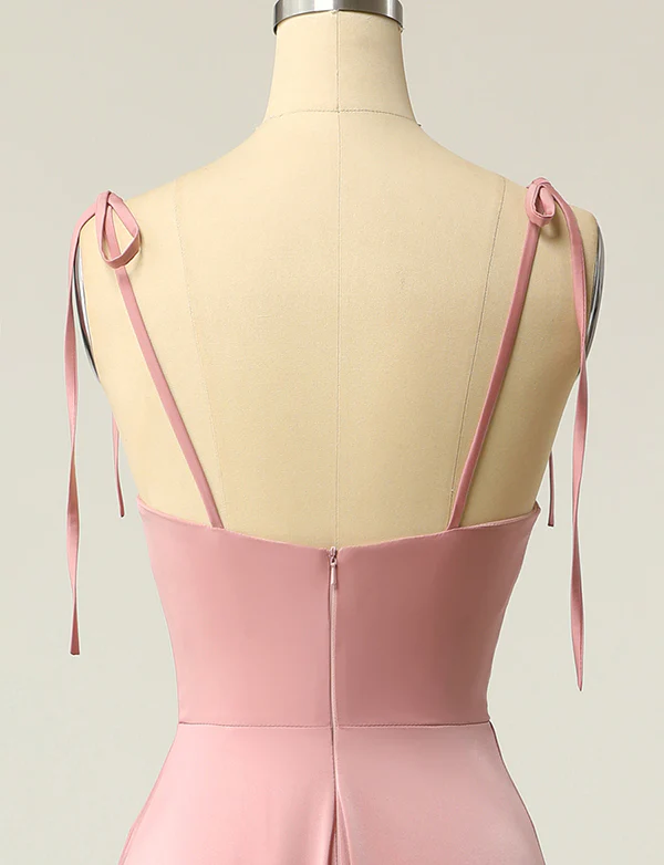 Robe de bal de fin d’année à bretelles spaghetti avec fente