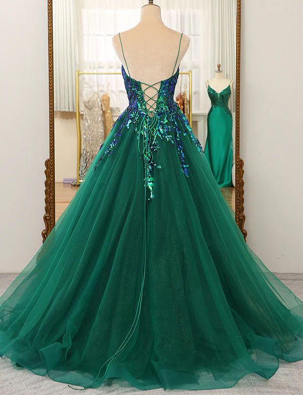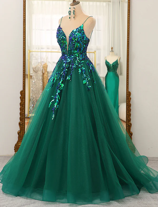Soyez le premier à laisser votre avis sur “Robe de bal de fin d’année en vert foncé à col en V profond avec applications”
