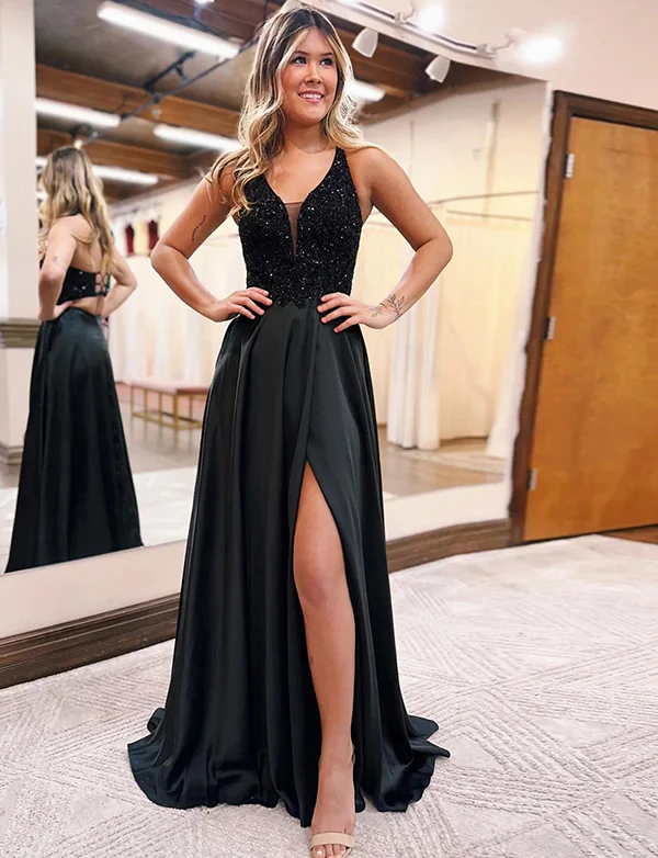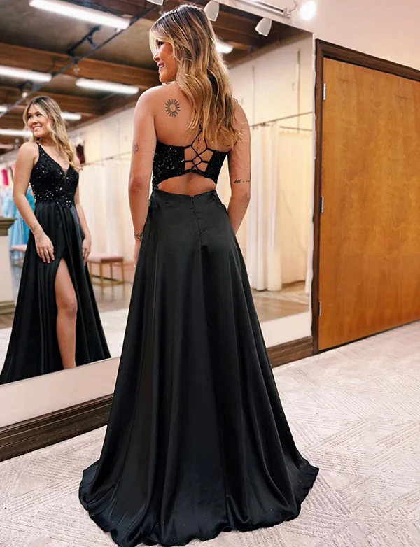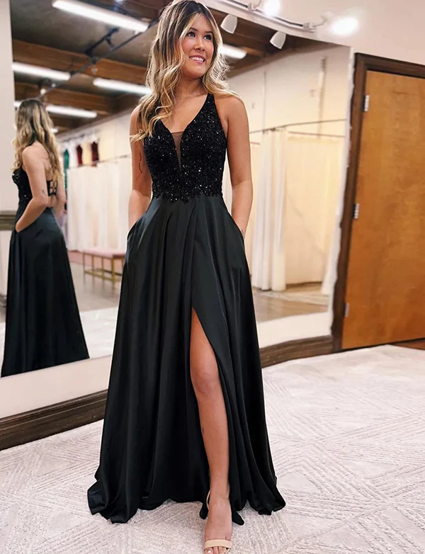 Robe de bal de fin d’année longue et étincelante avec poches
