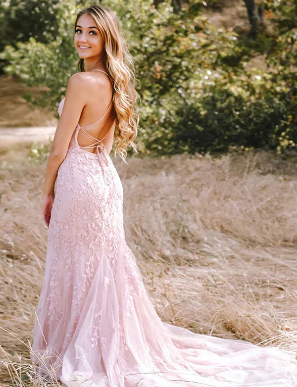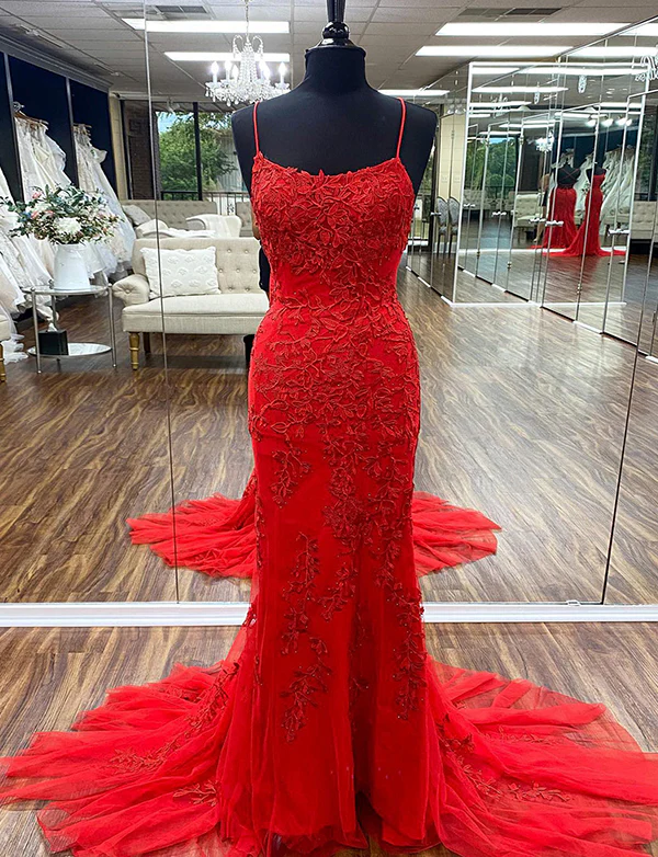 Robe de bal de fin d’année sirène à bretelles spaghetti