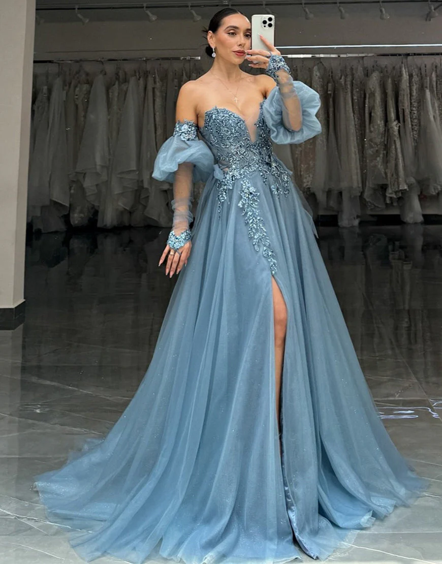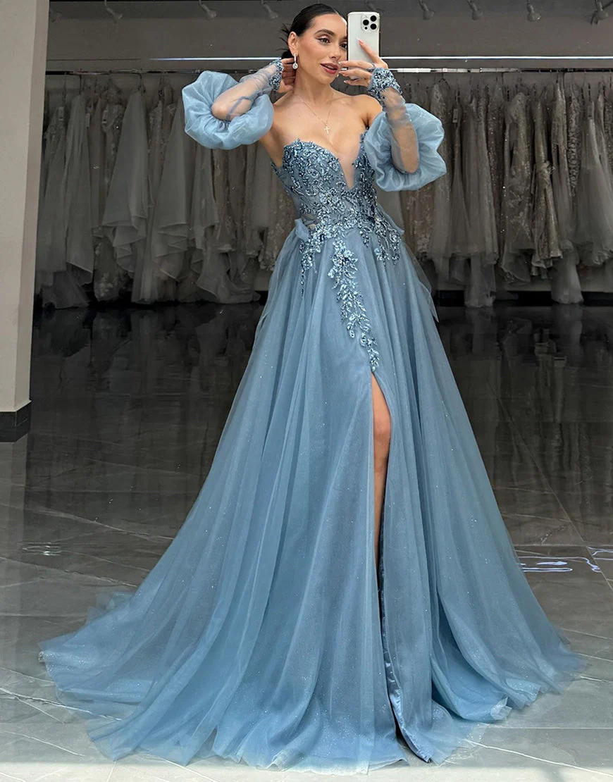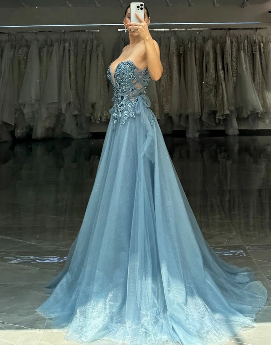 Design: La robe de bal longue en tulle est parfaite pour les occasions spéciales. Avec son décolleté en cœur gris et bleu scintillant, elle est à la fois élégante et moderne. Le corset assure un ajustement parfait tandis que les appliques ajoutent une touche de glamour. Commandez maintenant et brillez lors de votre prochain bal!