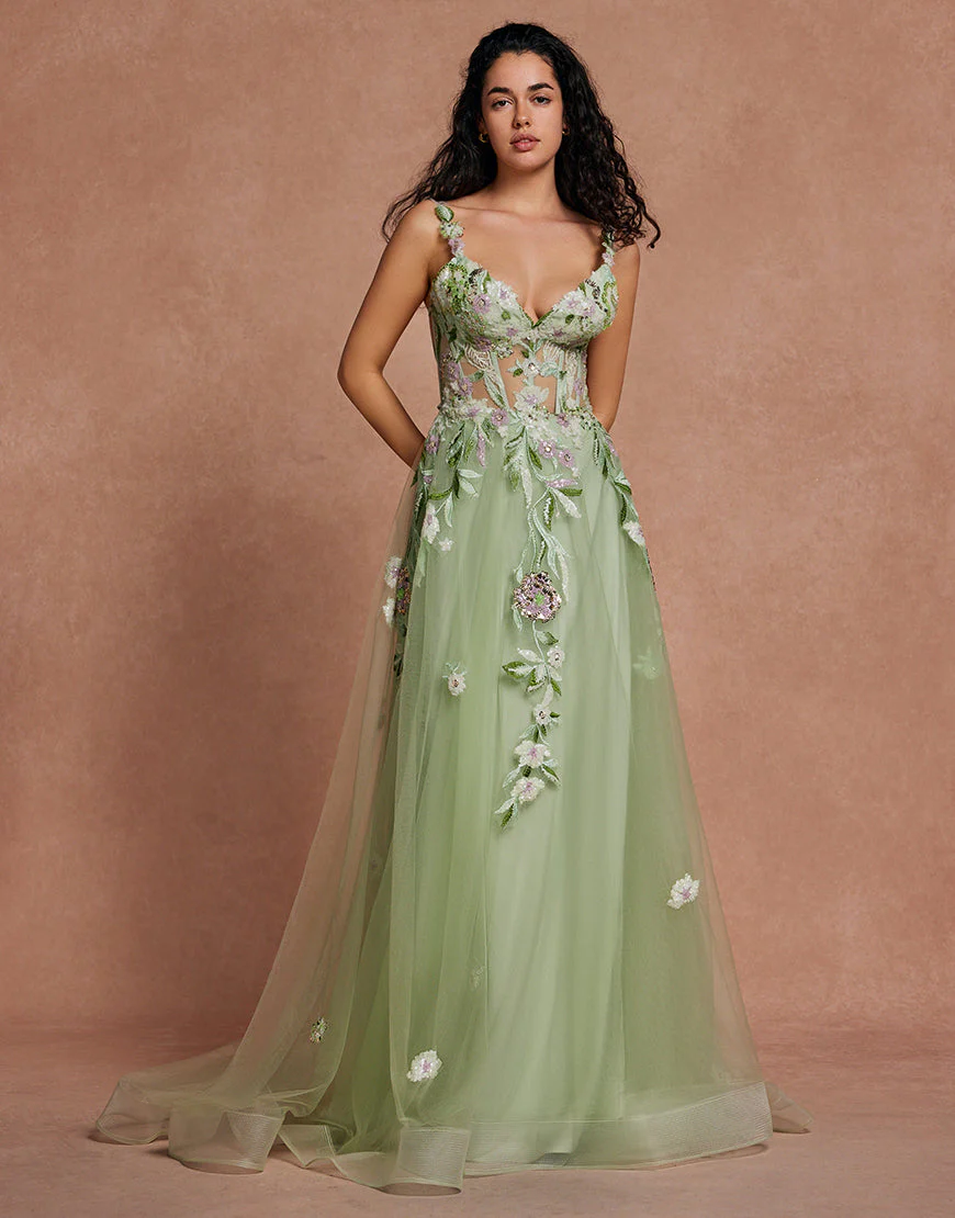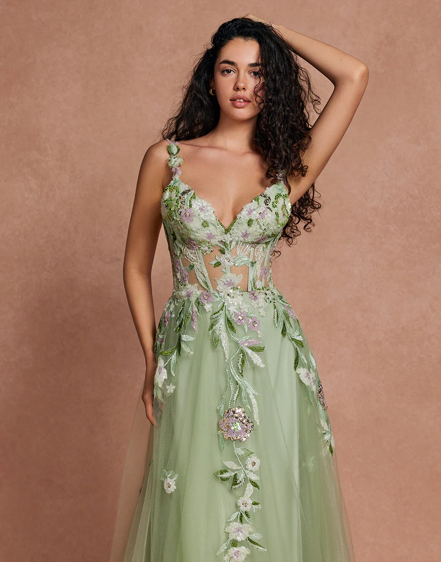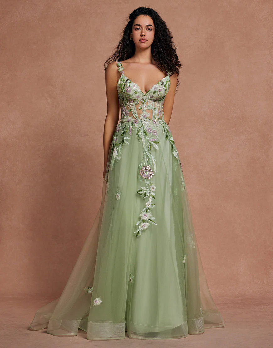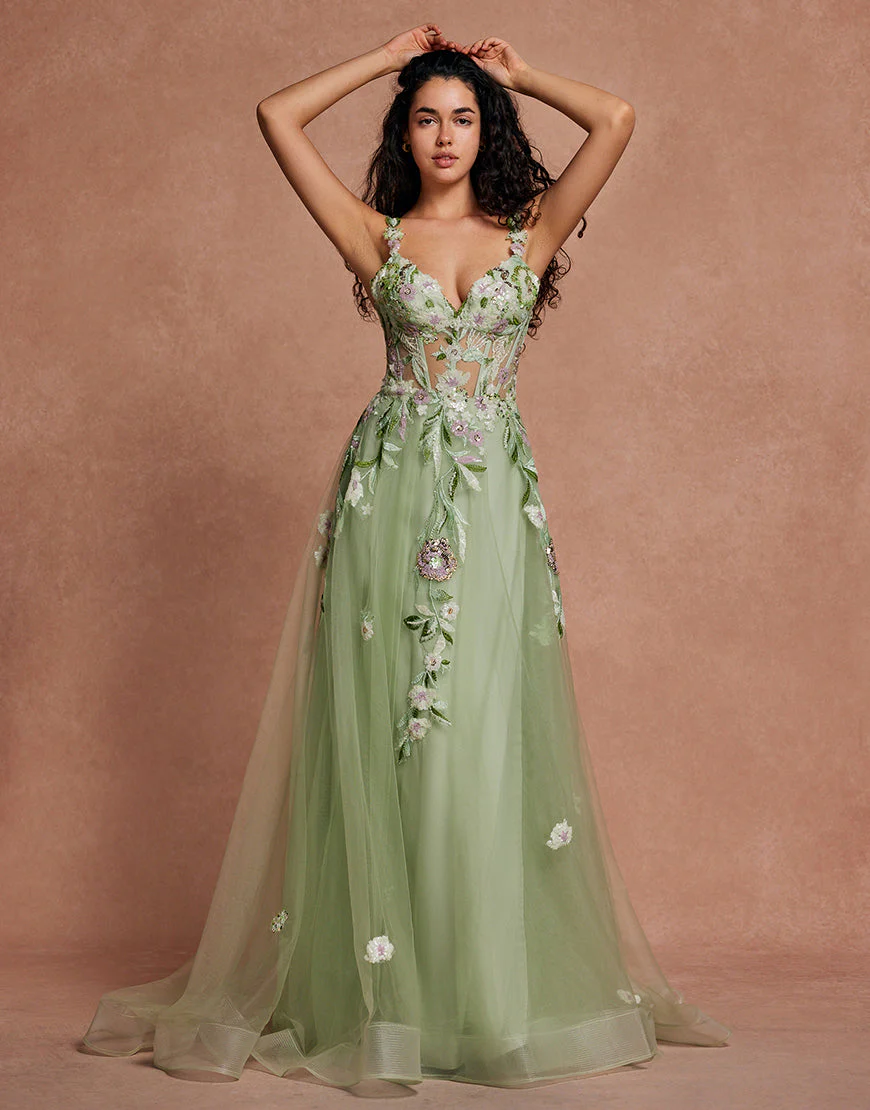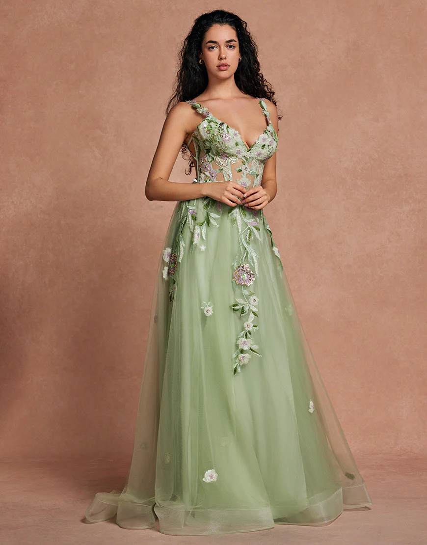 Design: Profitez d’une soirée de bal inoubliable avec cette robe longue en tulle vert à bretelles spaghetti. Le dos nu et la fente offrent une touche de glamour tandis que les paillettes et les appliques ajoutent une touche de brillance. La robe ligne A flatteuse est dotée de lacets pour un ajustement parfait.