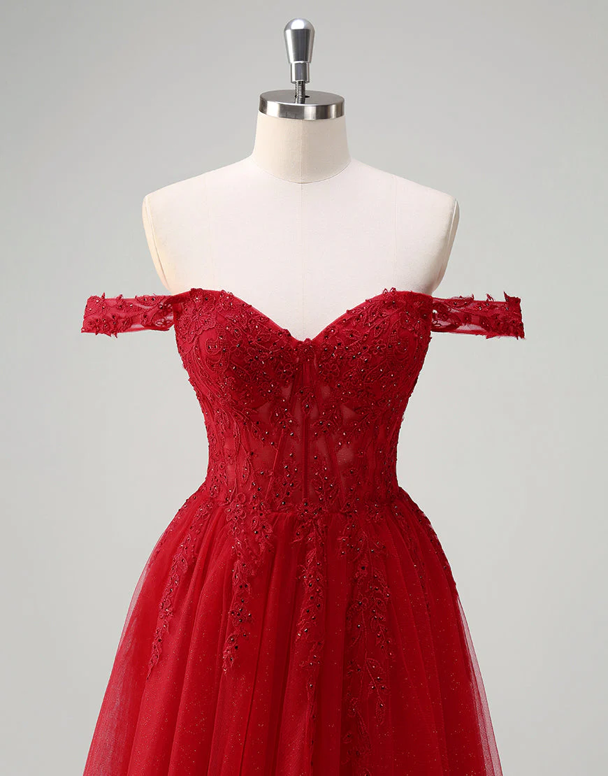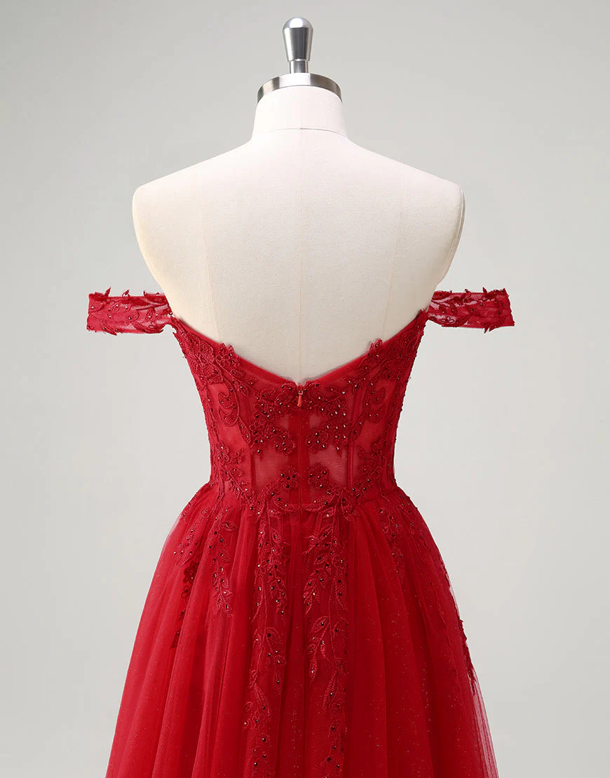 Design: Cette robe de bal trapèze sans bretelles en tulle est magnifiquement ornée d’appliques en dentelle. Sa coupe sans manches et dos nu offre un look élégant et les détails en dentelle ajoutent une touche de féminité. La fermeture éclair pratique et la fente apportent une touche de modernité. Parfaite pour les soirées formelles.