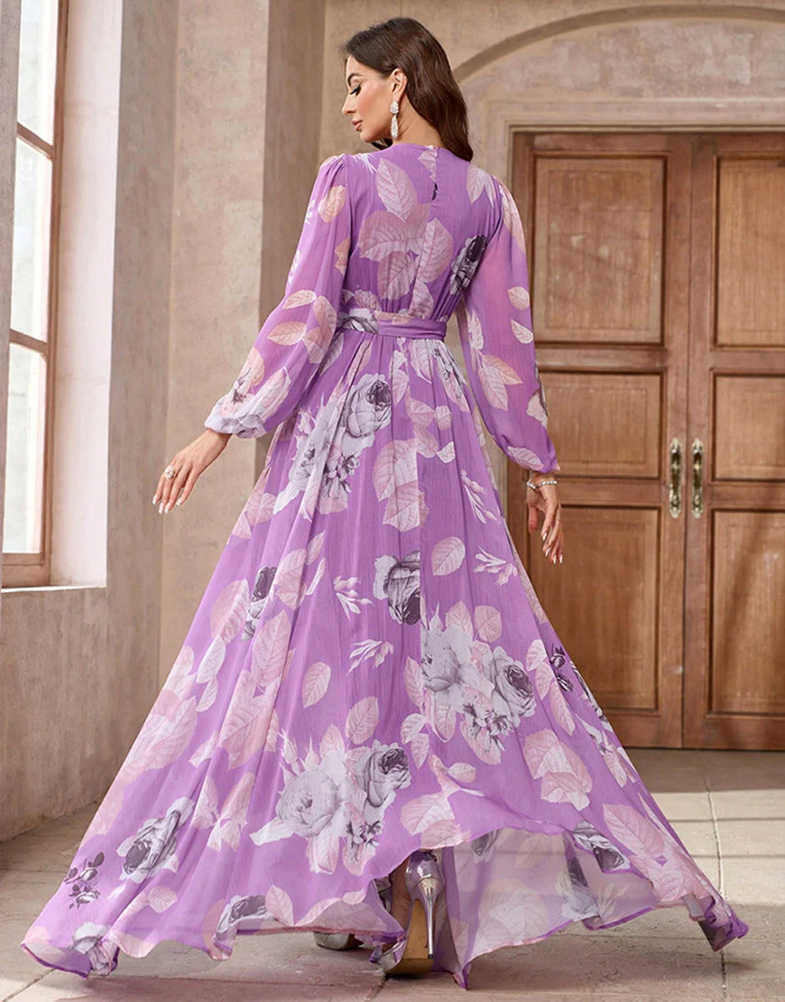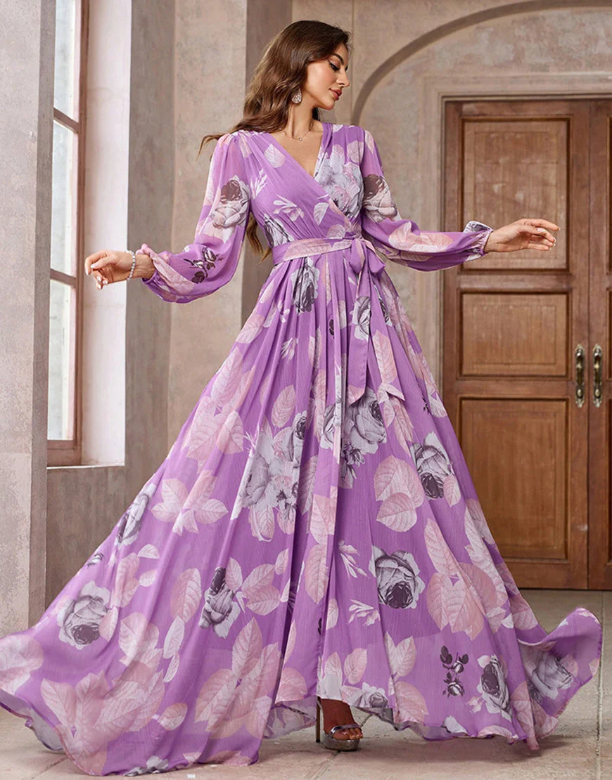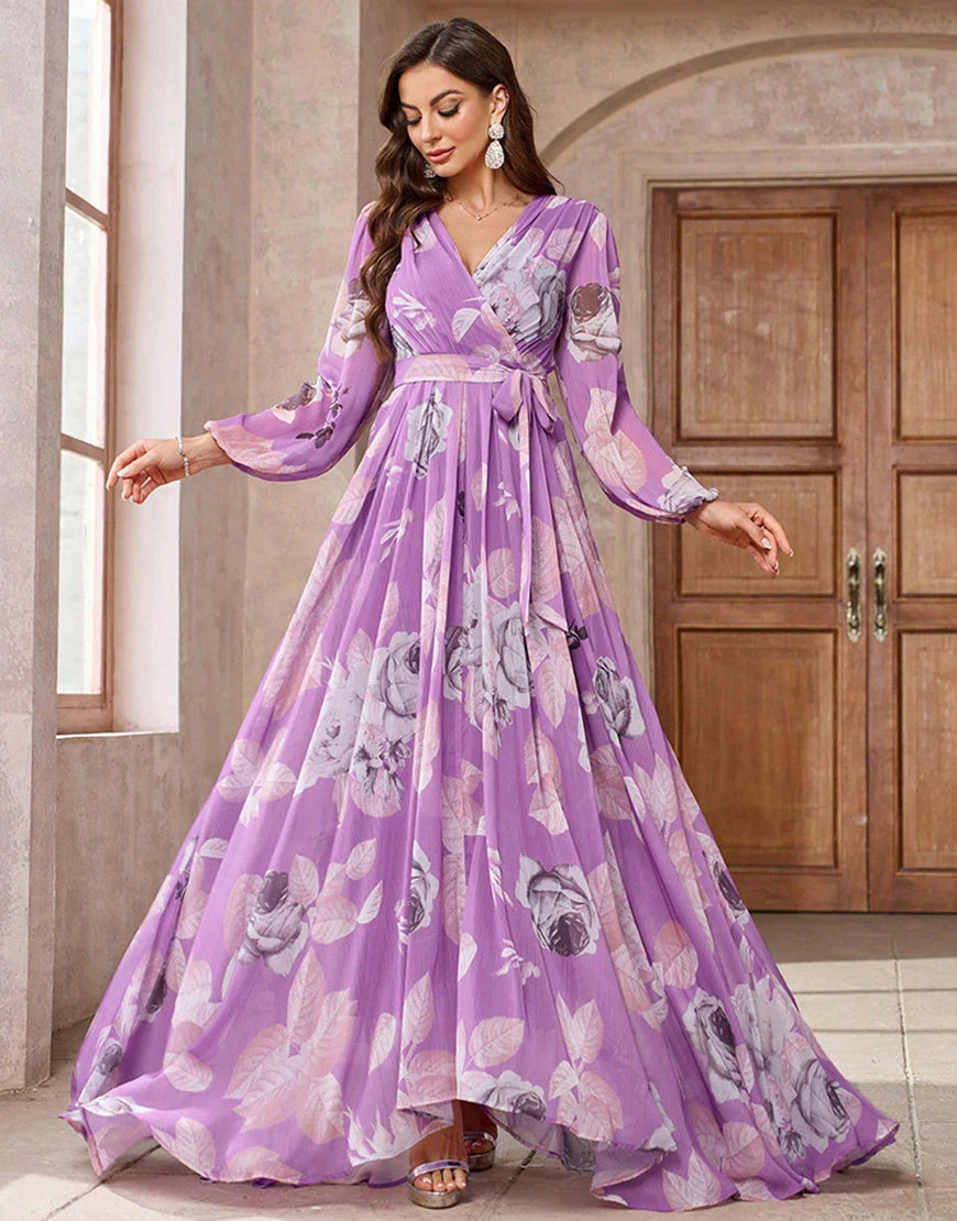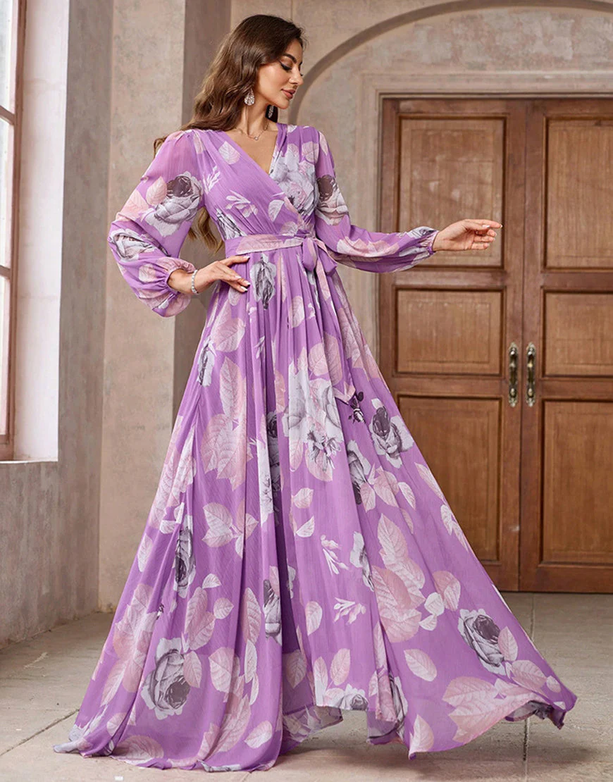 Design: Cette robe de bal violette à imprimé floral est l’option parfaite pour votre prochaine soirée. Avec son col en V flatteur et ses manches longues élégantes, elle offre une coupe A flatteuse qui mettra en valeur votre silhouette. La fermeture éclair pratique et la longueur au sol en font une tenue à la fois pratique et chic. Complétée par une ceinture assortie, cette robe est un choix incontournable pour toute occasion spéciale.