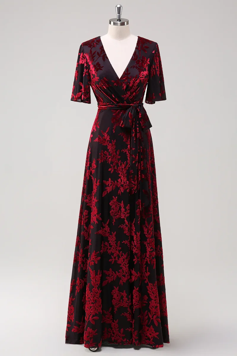Bourgogne Robe de demoiselle d’honneur longue et asymétrique