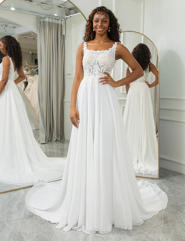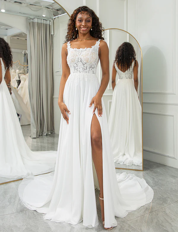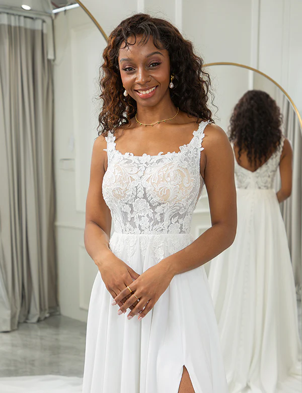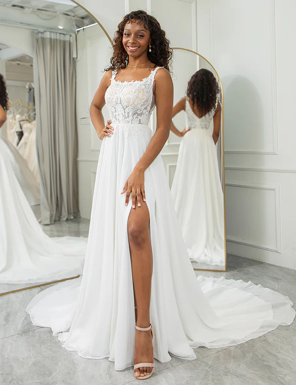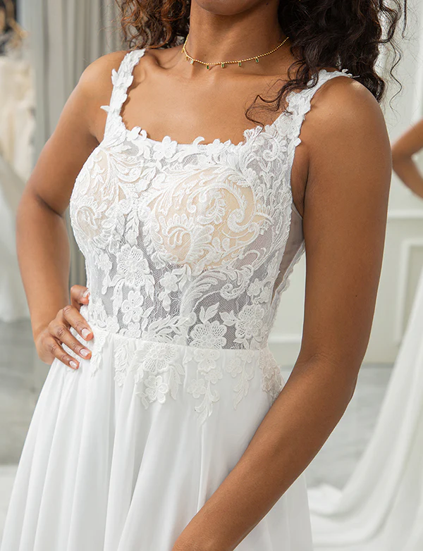 Robe de mariage carrée avec dentelle