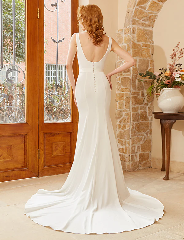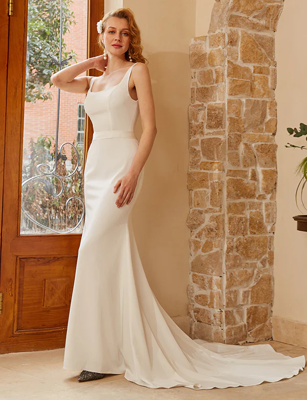 Blanc Sirène Manches Longues Balayage Train Robe de mariée avec dentelle