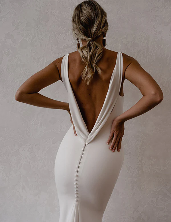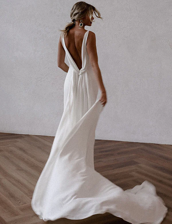 Blanc Sirène Manches Longues Balayage Train Robe de mariée avec dentelle