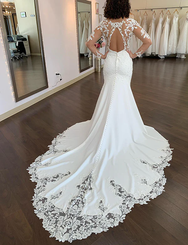 Robe de mariée ivoire sirène à manches longues en dentelle