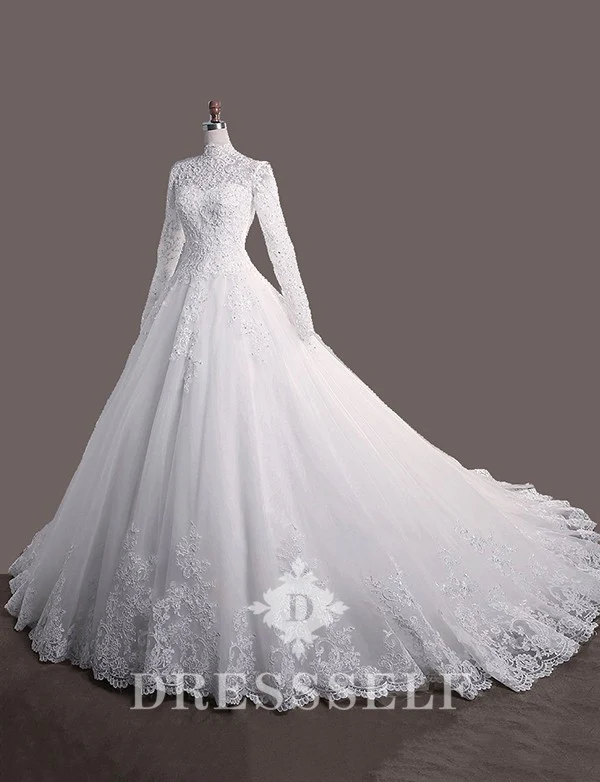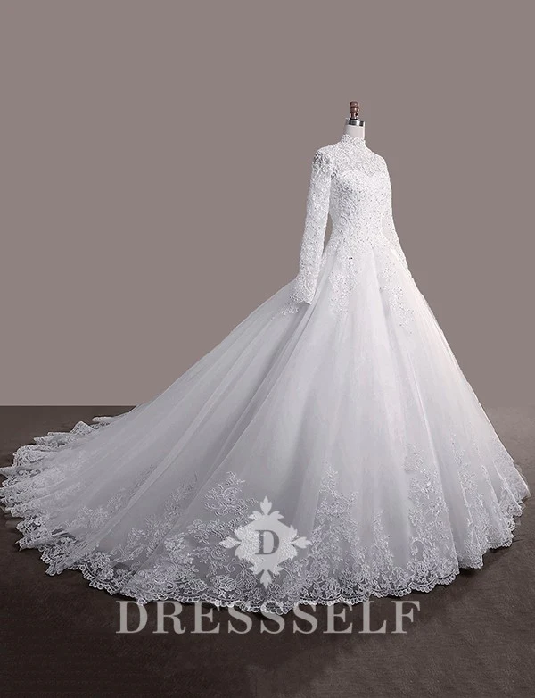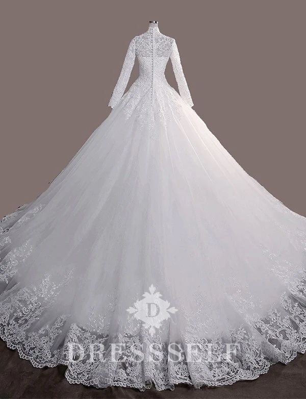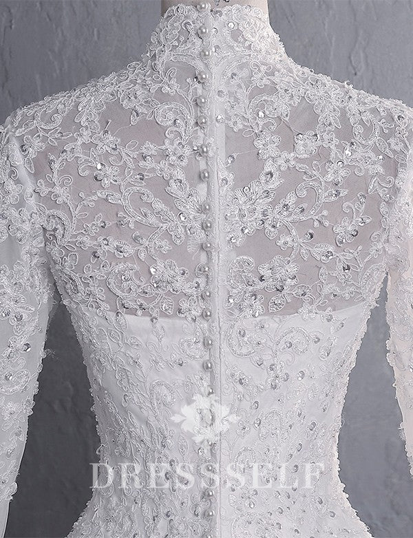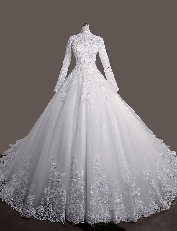 Robe de Mariée Musulmane de Luxe en Dentelle Brodée