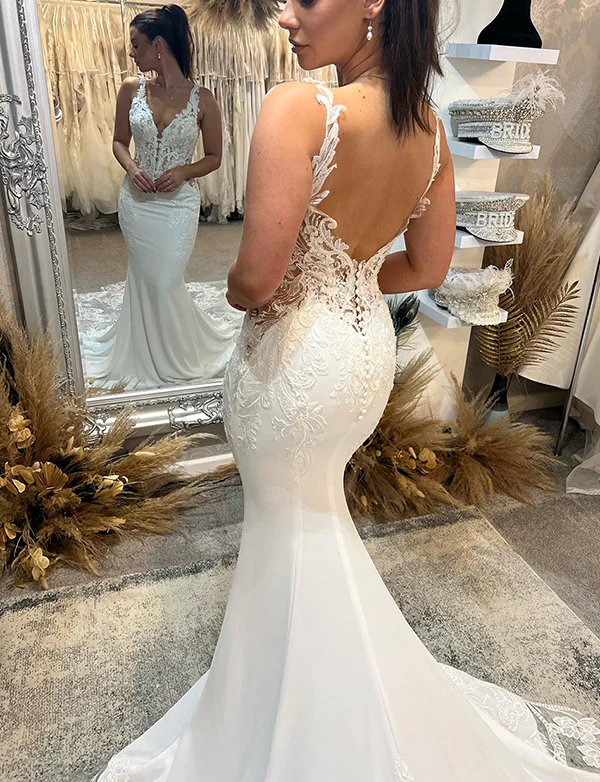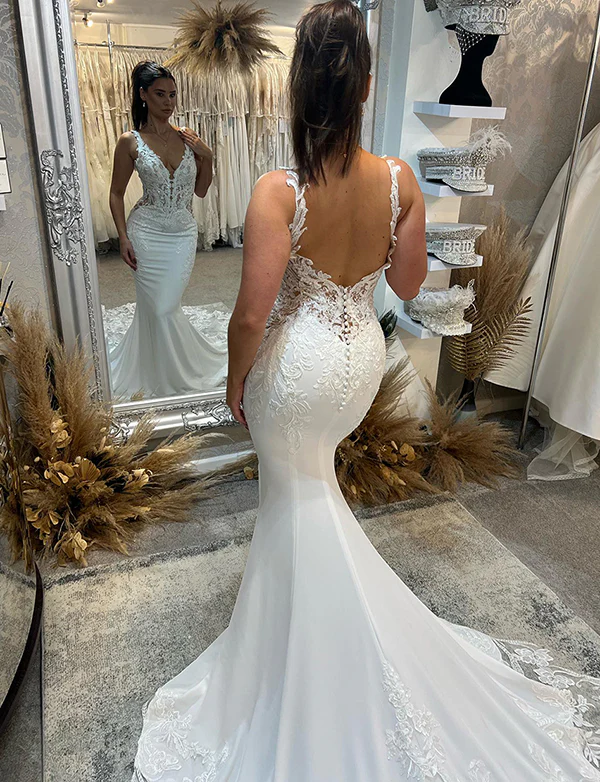 Soyez le premier à laisser votre avis sur “Robe de mariée sirène à col en V et fleurs en 3D avec applications en dentelle”