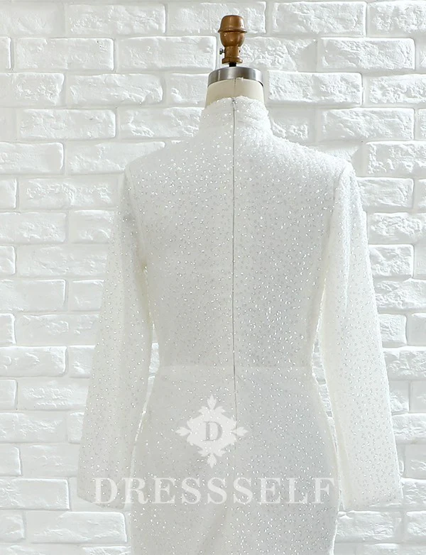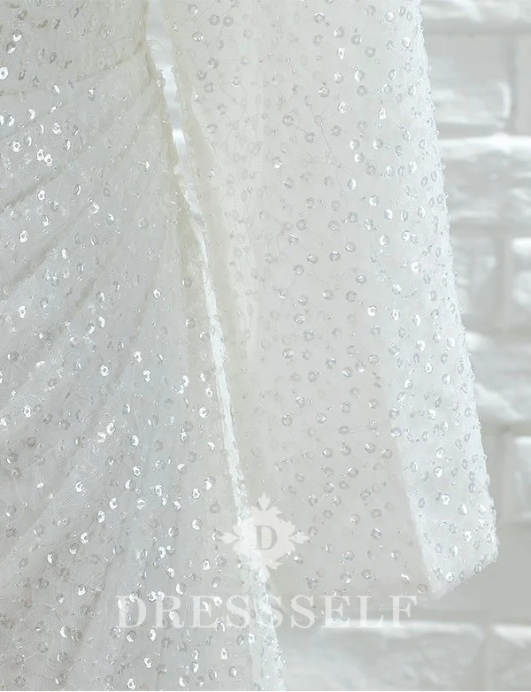 Blanc Sirène Manches Longues Balayage Train Robe de mariée avec dentelle