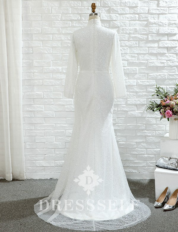 Robe de Mariée Sirène à Col Montant