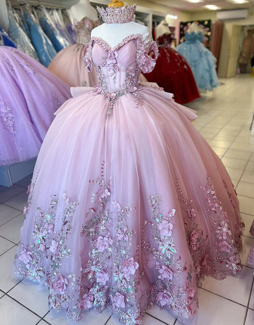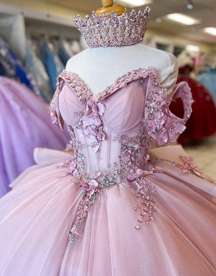 Soyez le premier à laisser votre avis sur “Robe de Quinceanera en tulle à épaules dénudées et traîne avec appliques et fleurs roses”