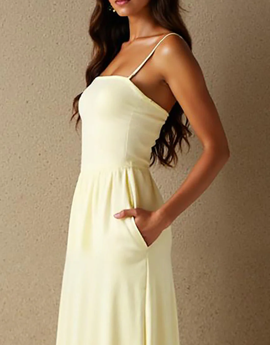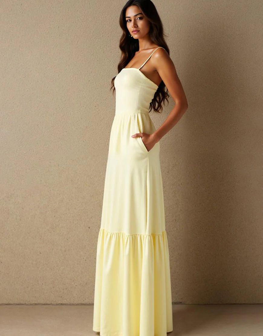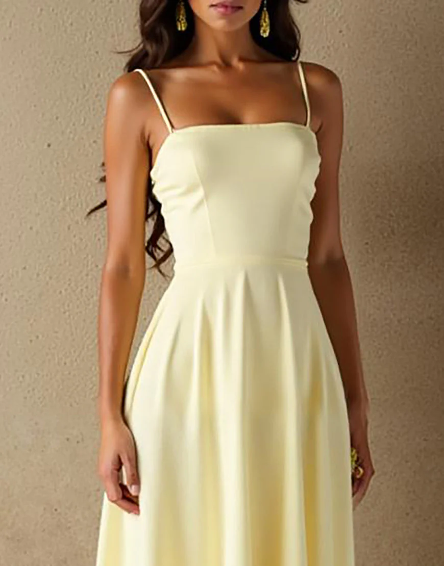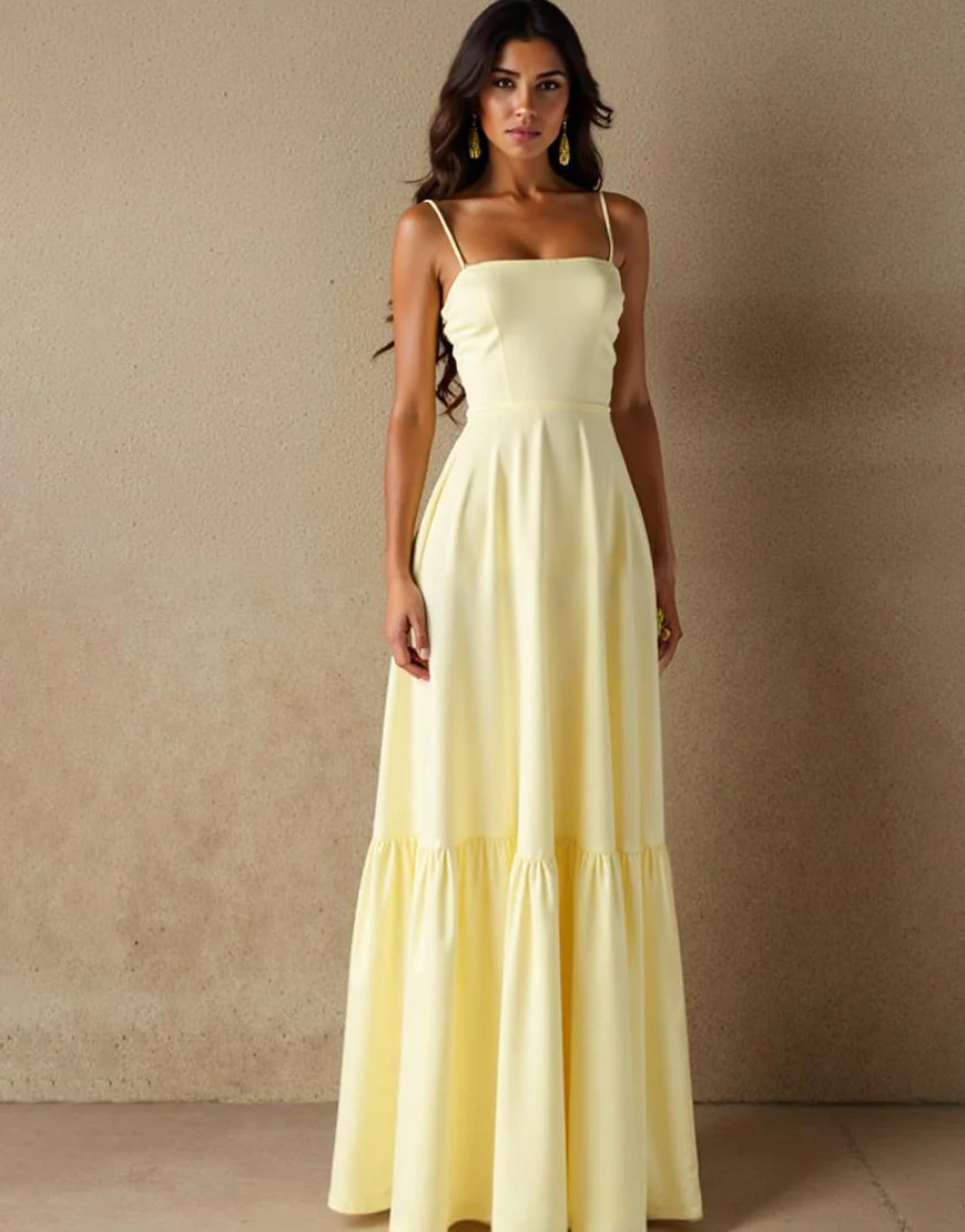 Robe de soirée à bretelles spaghetti en coton jonquille