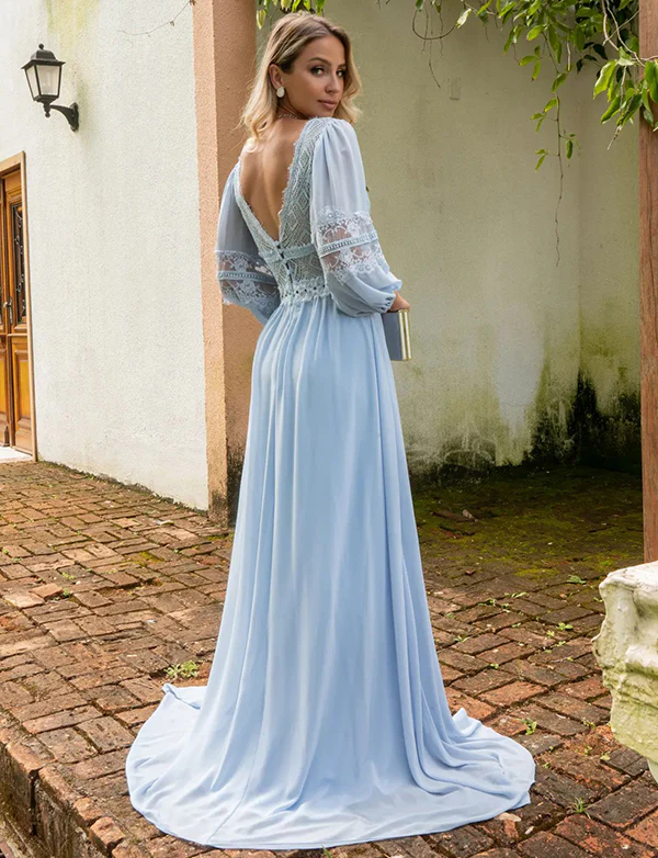 Avec découpe en dentelle et mi-long sur le guippir et élastique sur la manche. Encolure profilée en chantilly et tulle, avec bonnets. jupe avec beaucoup de volume en mousseline au toucher soyeux. dans le dos, encolure en V, fermeture boutonnée et zippée.