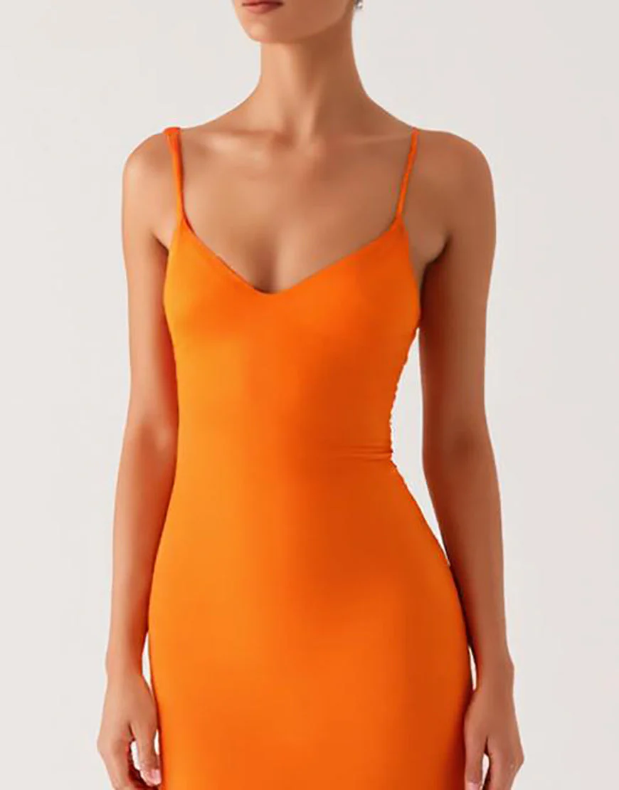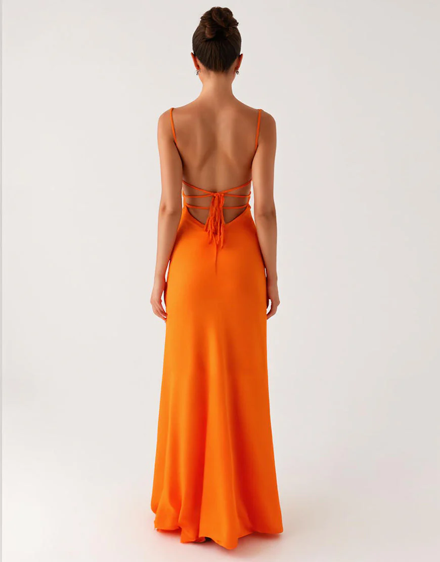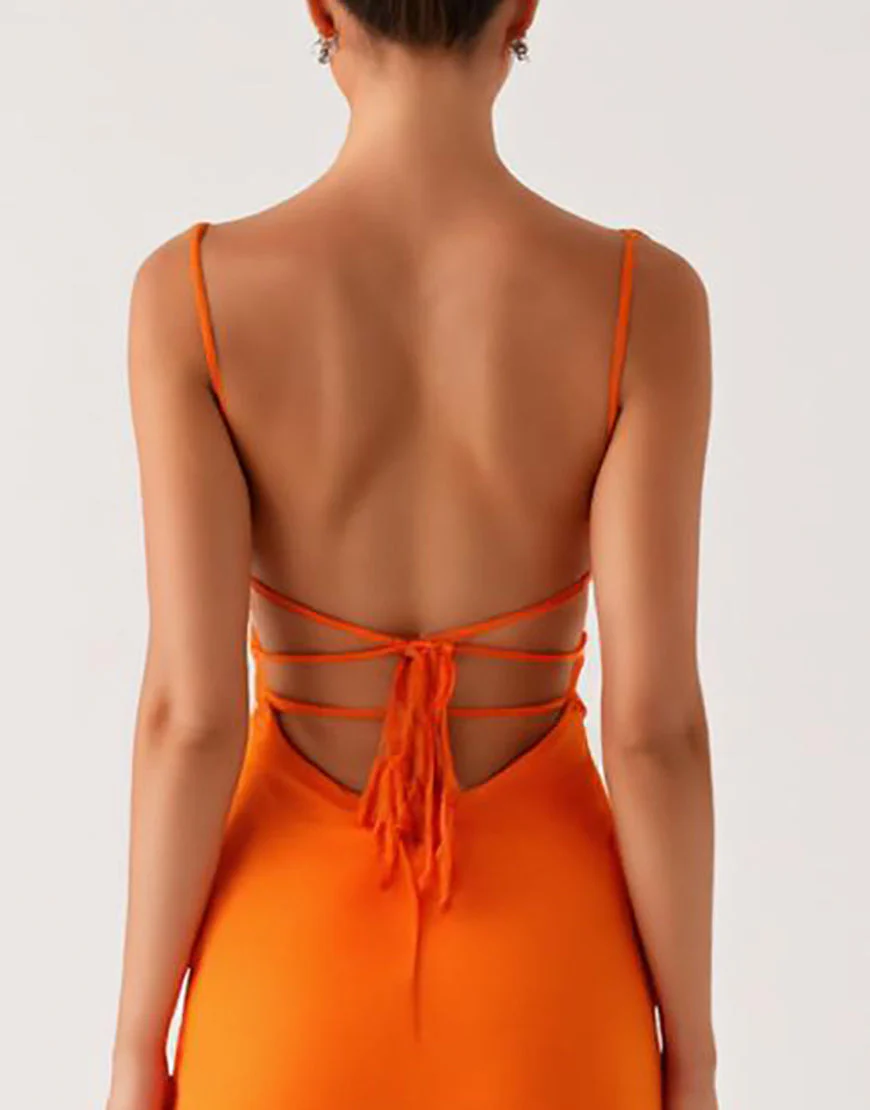 Robe de soirée dos nu fourreau à lacets orange