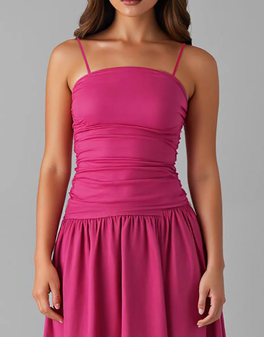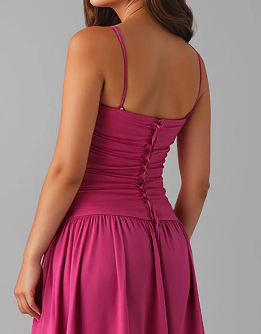 Robe de soirée en coton fuchsia à bretelles spaghetti
