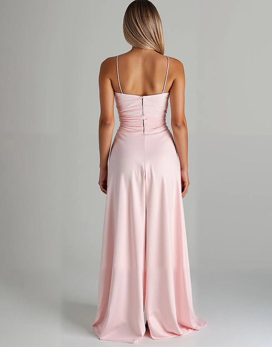 Café Mousseline De Soie Une Ligne Spaghetti Bretelles Longue Robe De Soirée