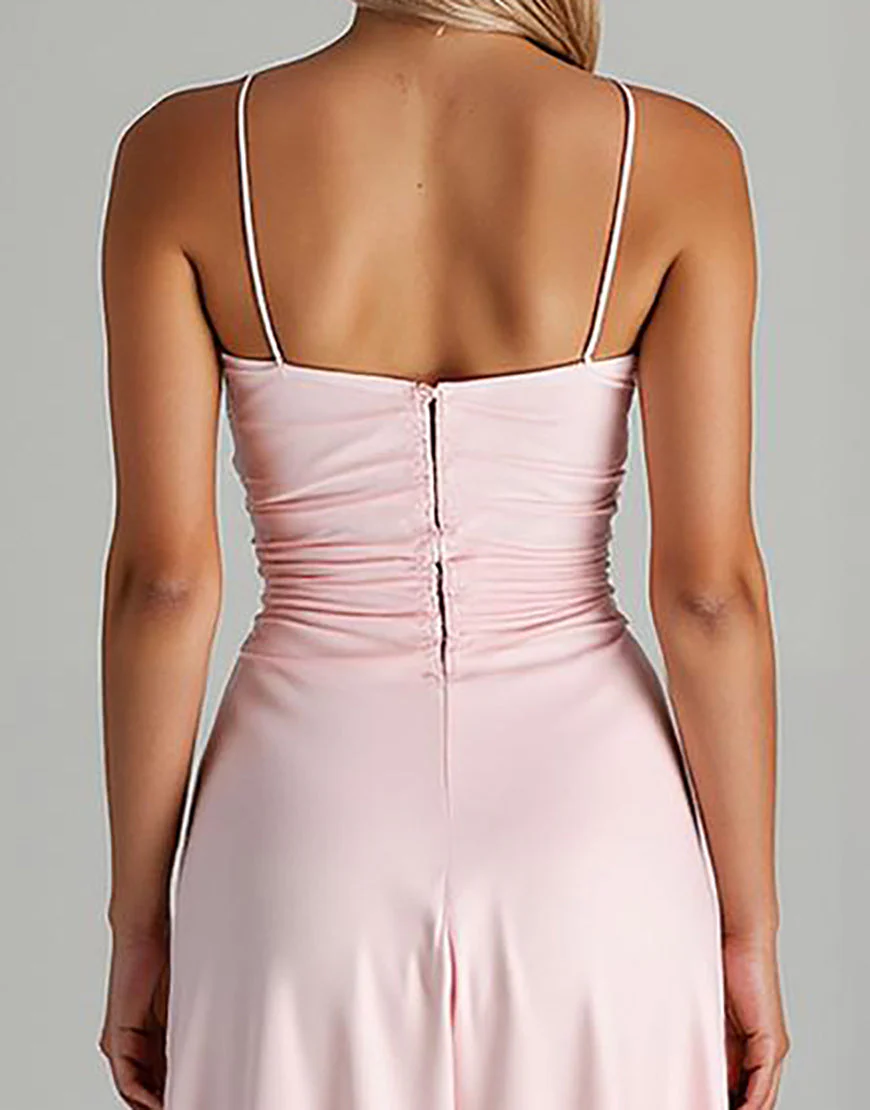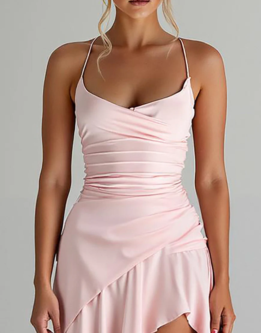 Robe de soirée en mousseline de soie rose clair à volants High-Low