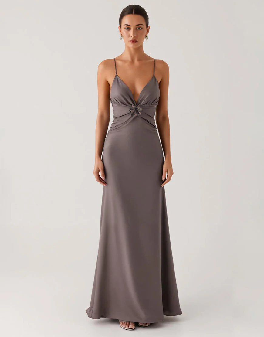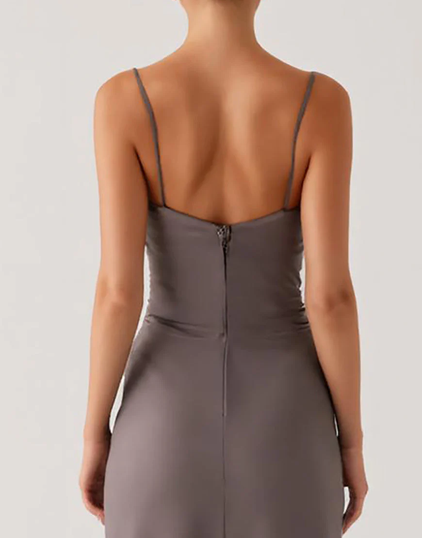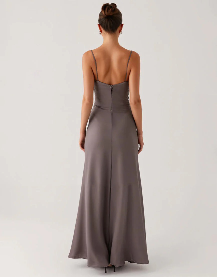 Robe de soirée fourreau en satin gris foncé