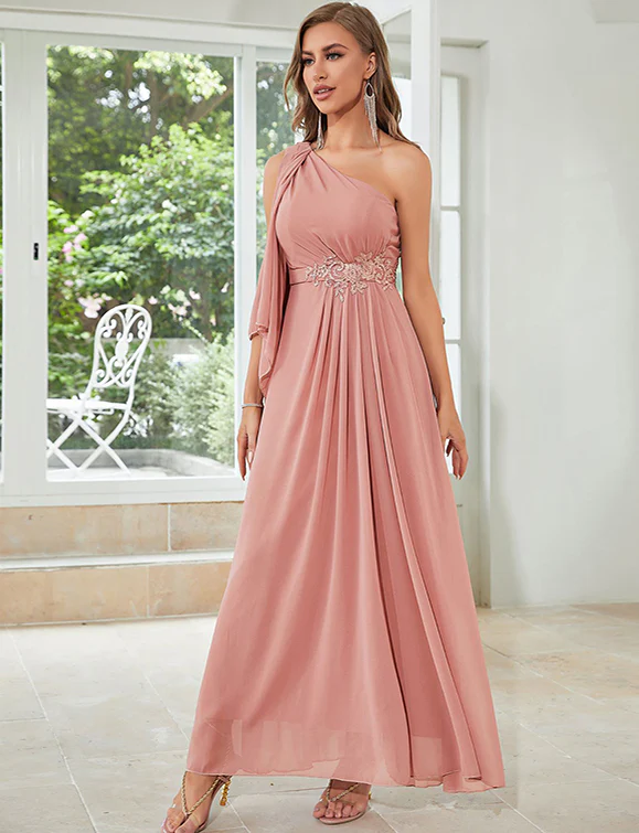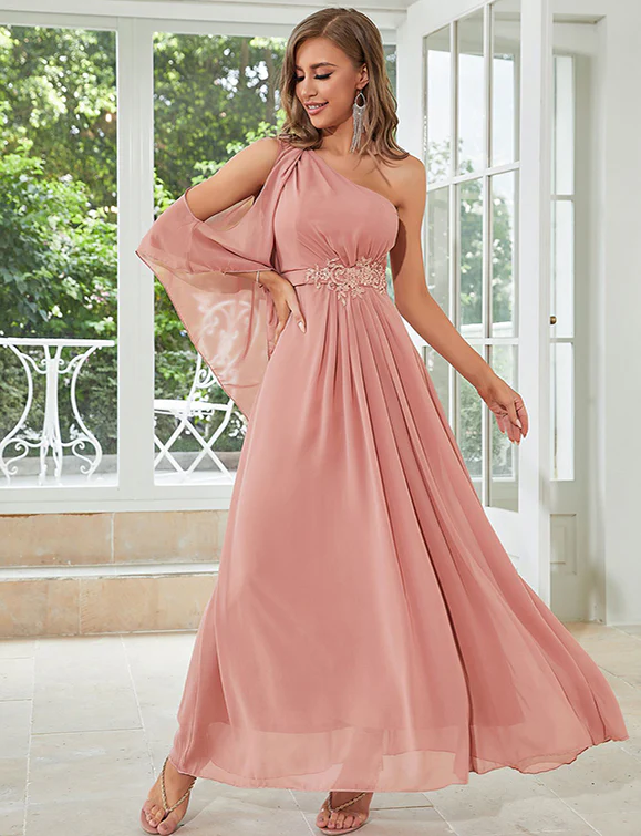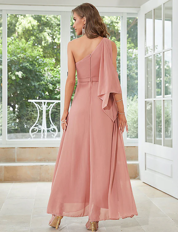 Robe en chiffon à une épaule, rose lotus