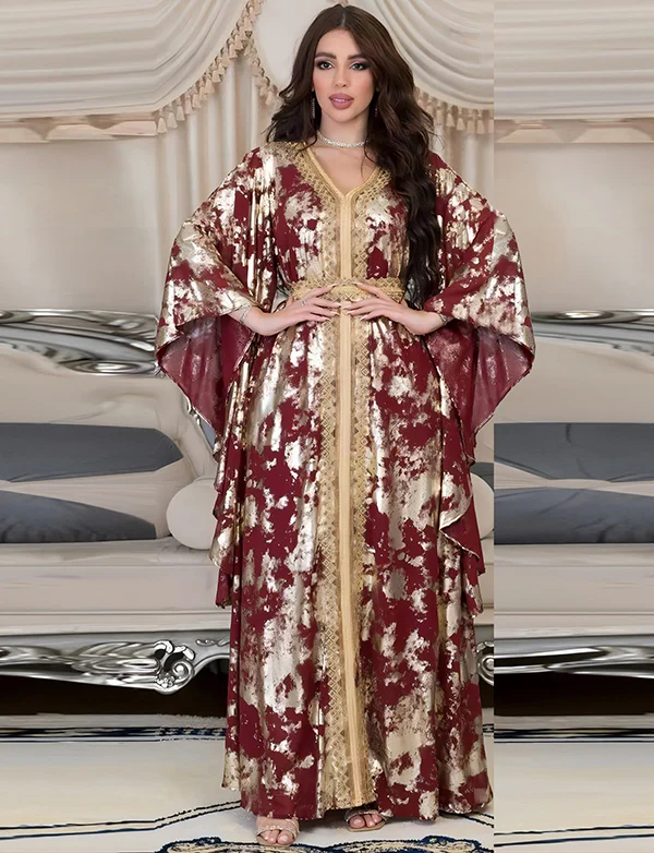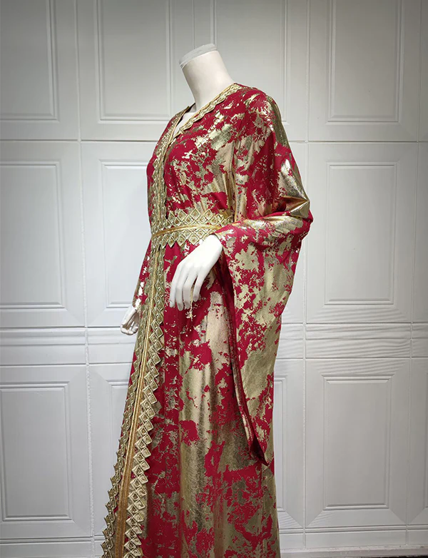 Robe Longue Marocaine Marocaine Florale Rouge