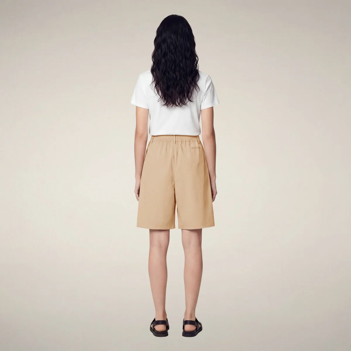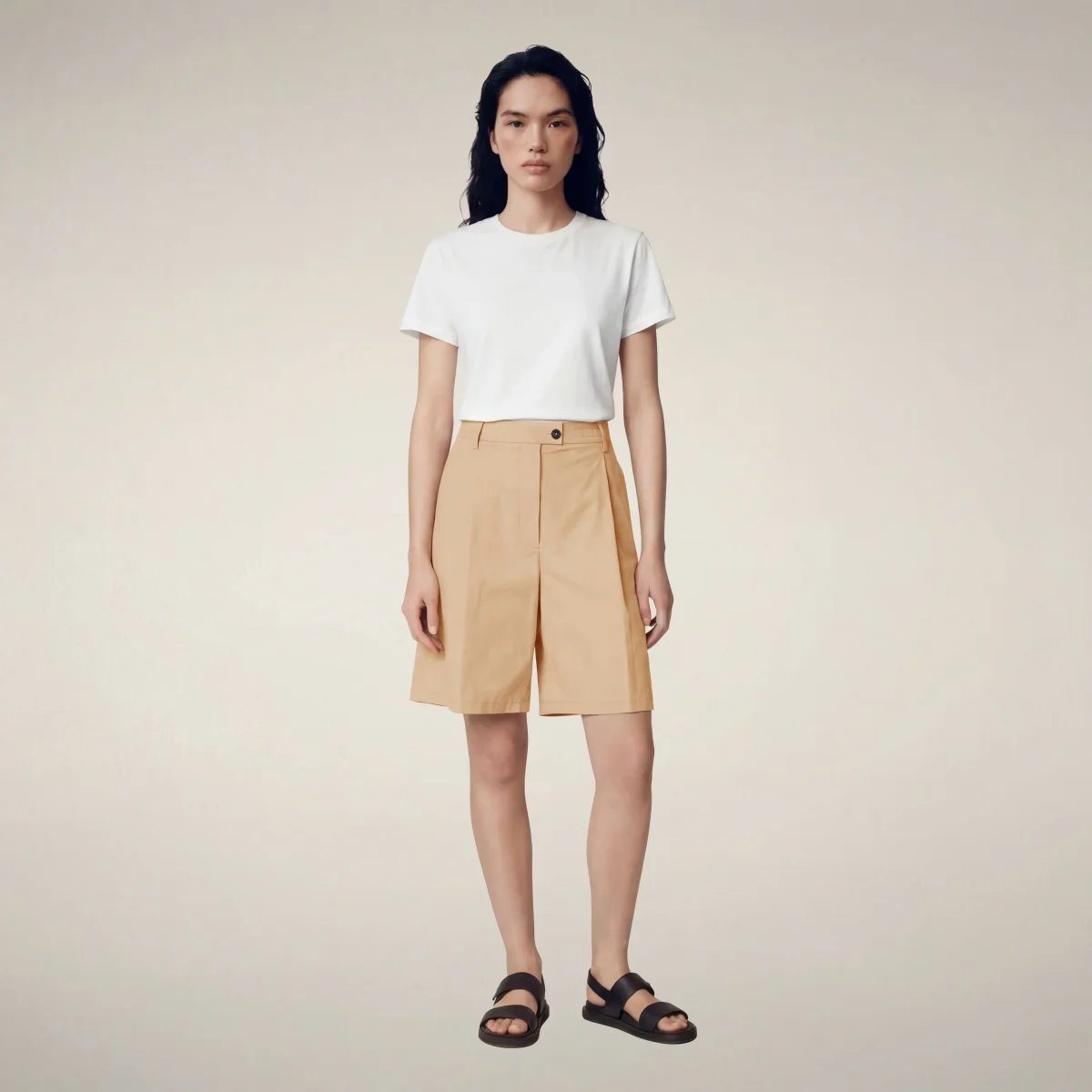 Gli shorts donna modello Lysandra – ASAP mantengono il guardaroba estivo al massimo dell’efficienza: sono realizzati in gabardina quick-dry, no-iron e resistente al pilling. Traspiranti e leggeri, hanno chiusura con zip e bottone, elastico sul retro della vita, passanti, pinces frontali e tasche ai lati. Linee pulite e comfort facile, da indossare dall’ufficio al weekend.