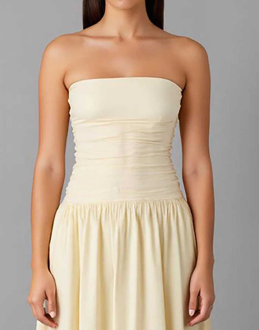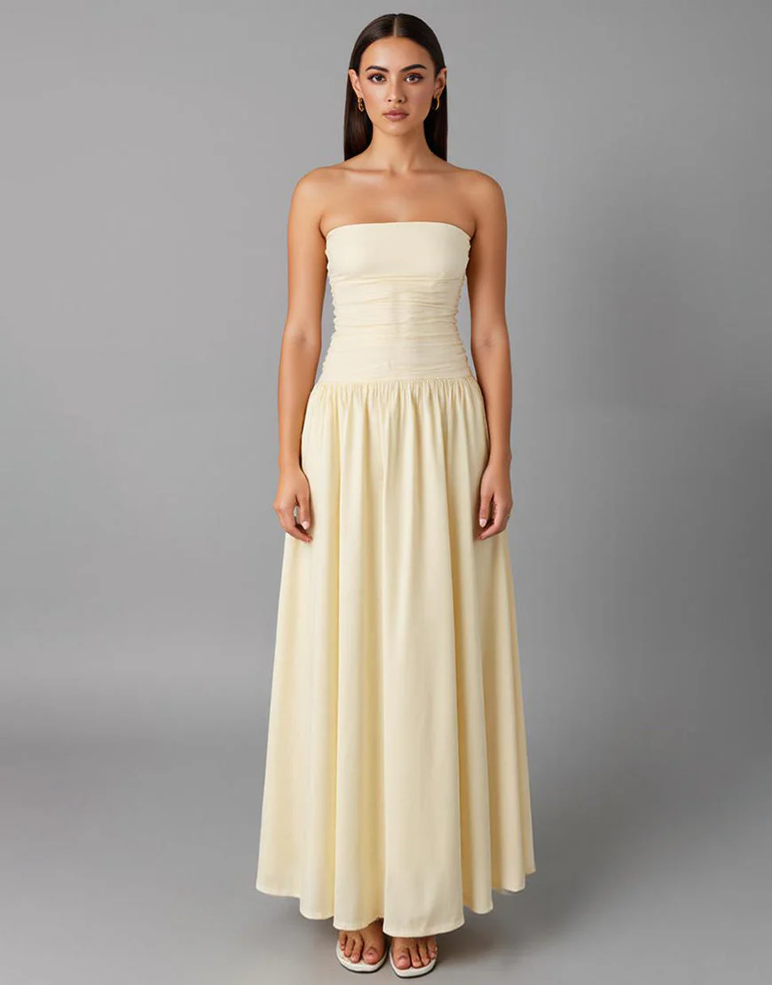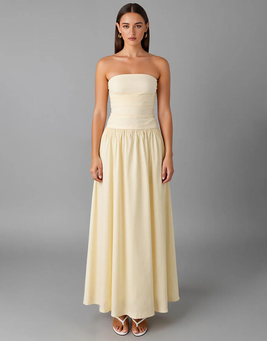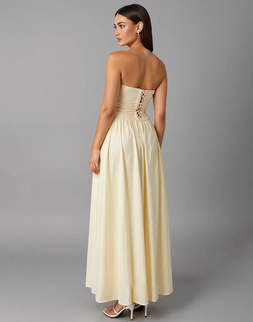 Simple Mousseline de Soie Jonquille Sans Bretelles Une Robe De Soirée Trapèze