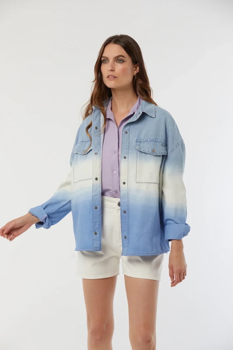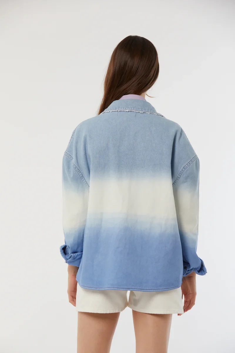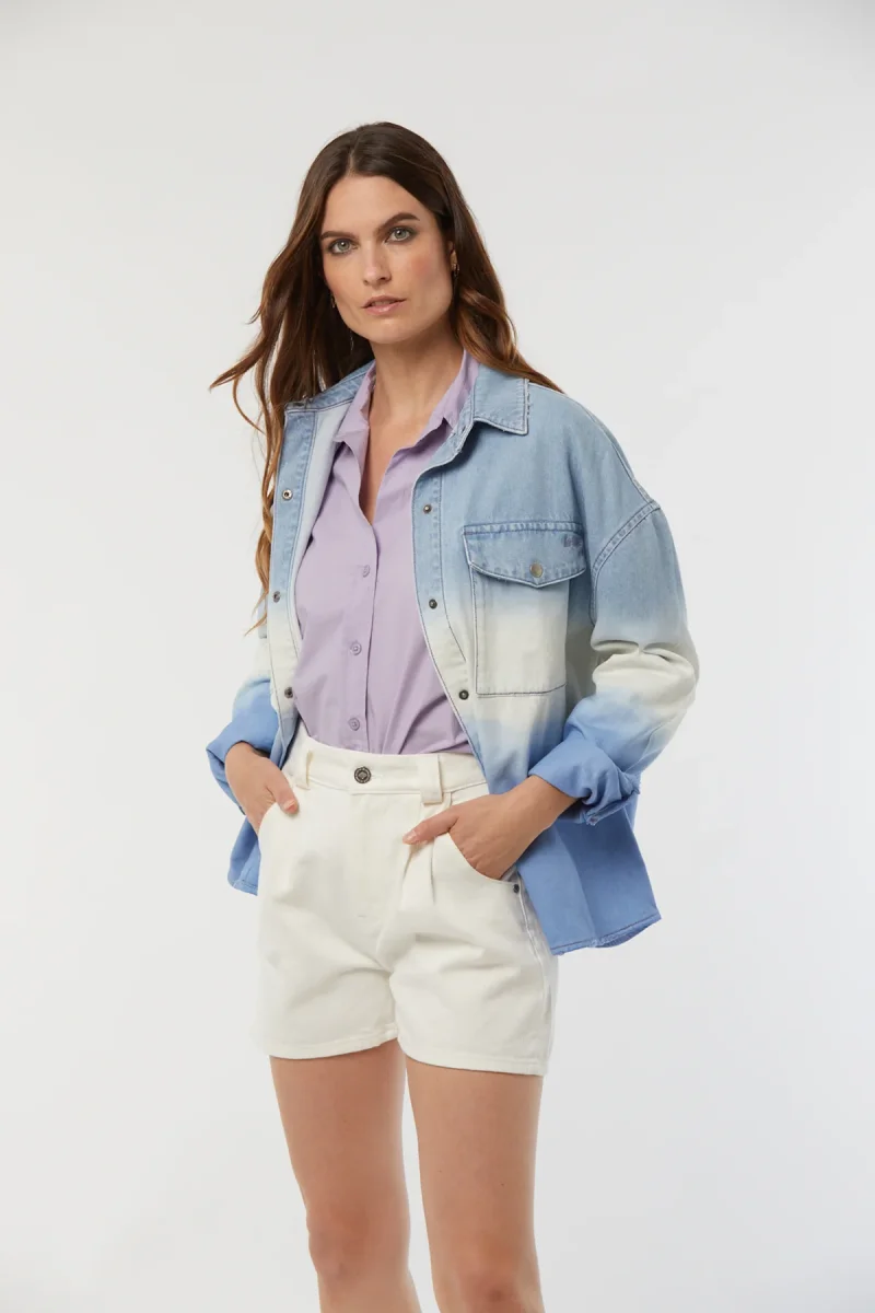 Surchemise en denim fixe,patte poutonnée pression, coupe boxy,emmanchure basse, so vintage