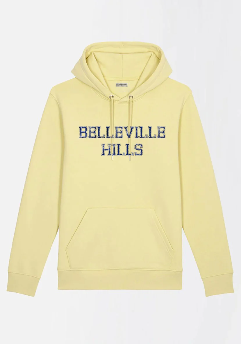 Le Sweat-shirt BELLEVILLE HILLS reflète tout le charme de no/one paris, combinant les styles des villes de Paris et Los Angeles, de Belleville à Beverly Hills.