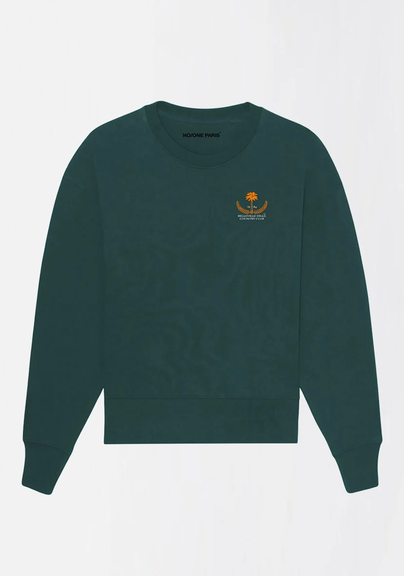Sweatshirt unisexe en coton bio avec imprimé « COUNTRY CLUB » sur le coeur et au dos. Expérimentez la douceur et le bien-être du coton biologique de qualité, conçu pour offrir une respirabilité maximale.
