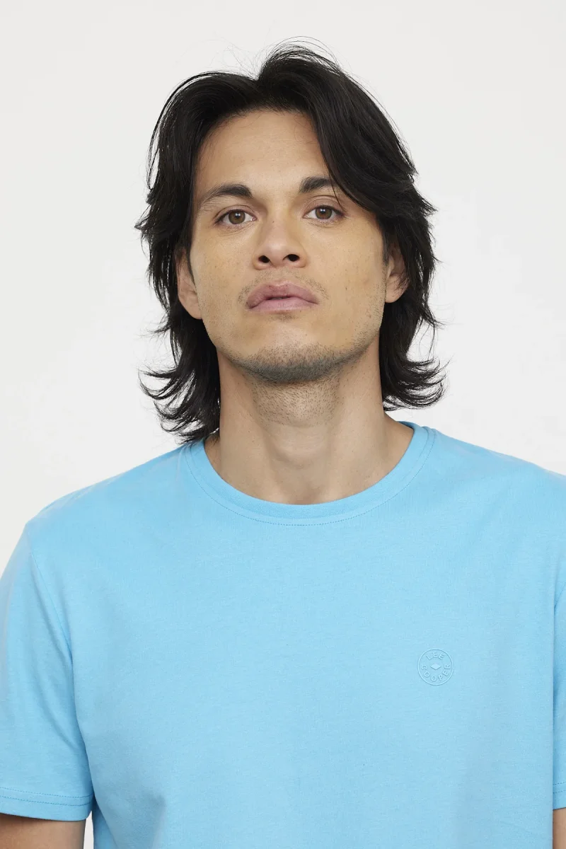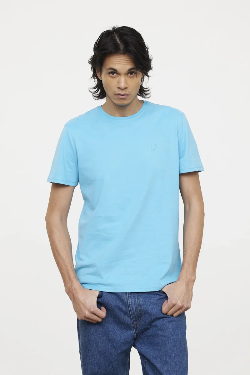 T-shirt basique col rond manches courtes en jersey de coton avec print poitrine, broderie «made with care» coté. Contient du coton organique.