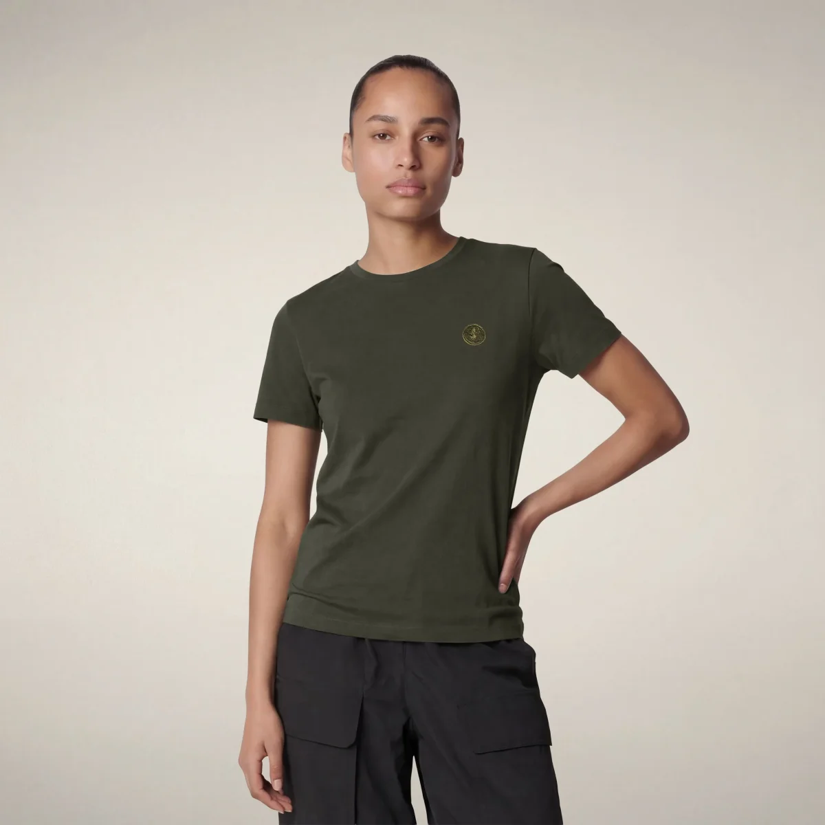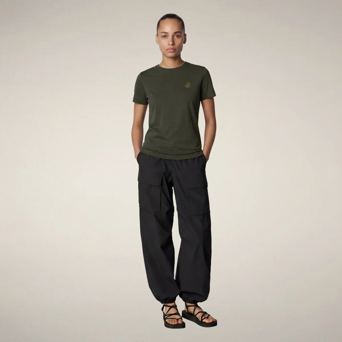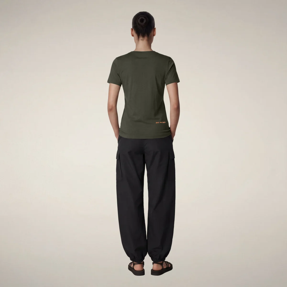 Lo stile Save The Duck entra nel tuo repertorio basic con la T-shirt donna modello Annabeth, definita da patch tondo sul petto e logo arancione ricamato sul retro. Super versatile e facile da inserire nei look quotidiani, è realizzata in morbido jersey di cotone biologico con maniche corte e scollo tondo.