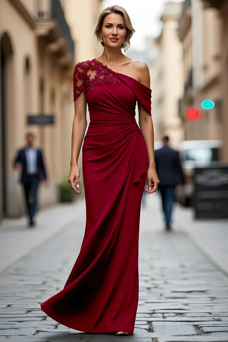 Soyez le premier à laisser votre avis sur “Une épaule sirène noire appliquée mère de la mariée robe”