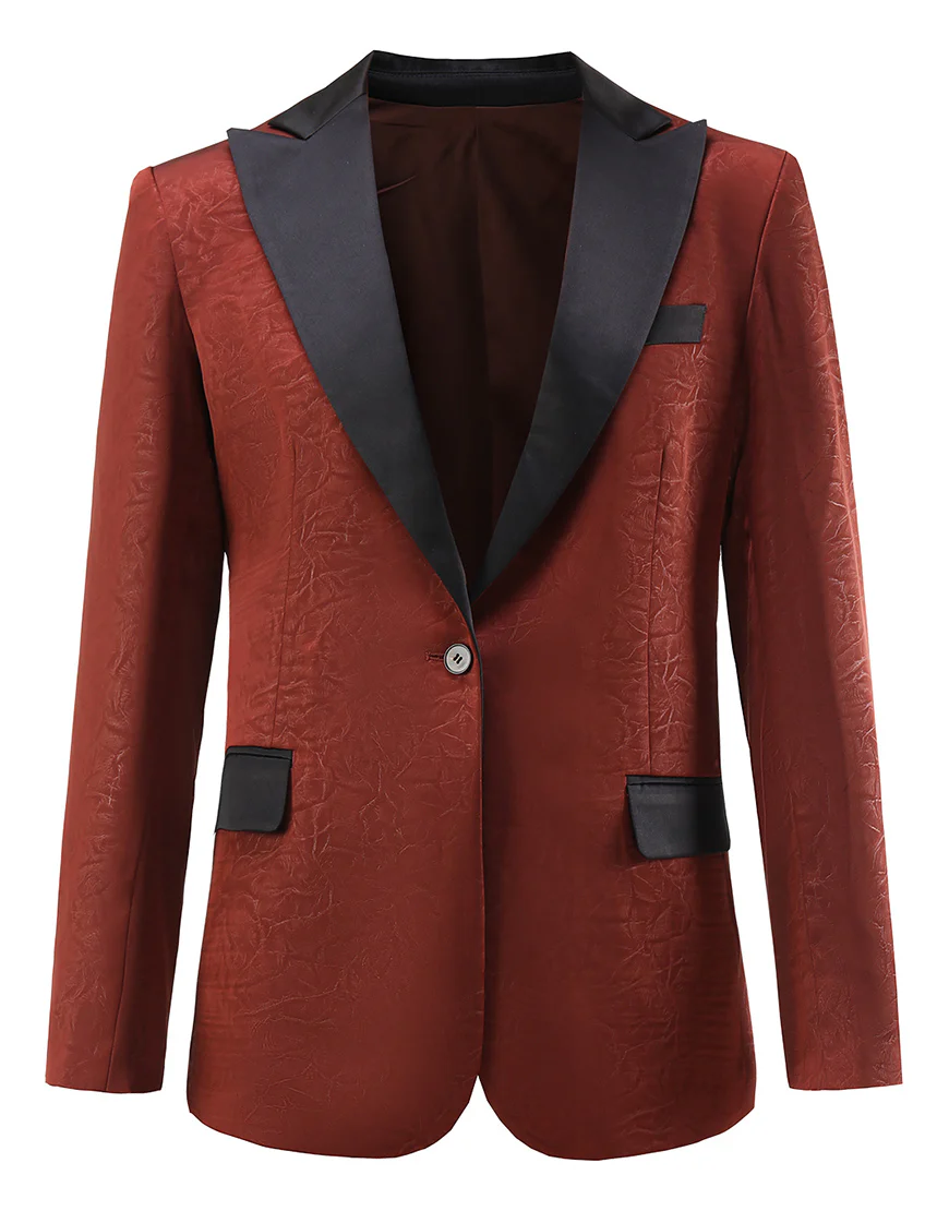 Offrez-vous un look professionnel avec notre veste de tailleur féminine en jacquard rustique. Le col revers pointu ajoute une touche d’élégance, tandis que la maille assure un confort tout au long de la journée. Une seule boucle apporte la touche finale de style à cette veste formelle.