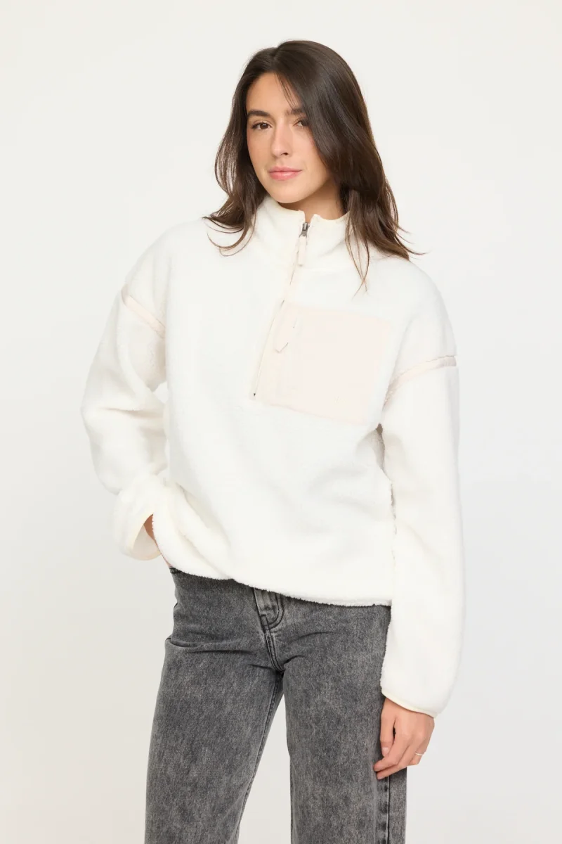 Avec son col montant et son fermeture zippée, cette veste garantit une coupe comfort idéale pour un look décontracté. Les manches longues et les poches plaquées contrastées, zippées sur le buste gauche, apportent une touche de style pratique et fonctionnel.