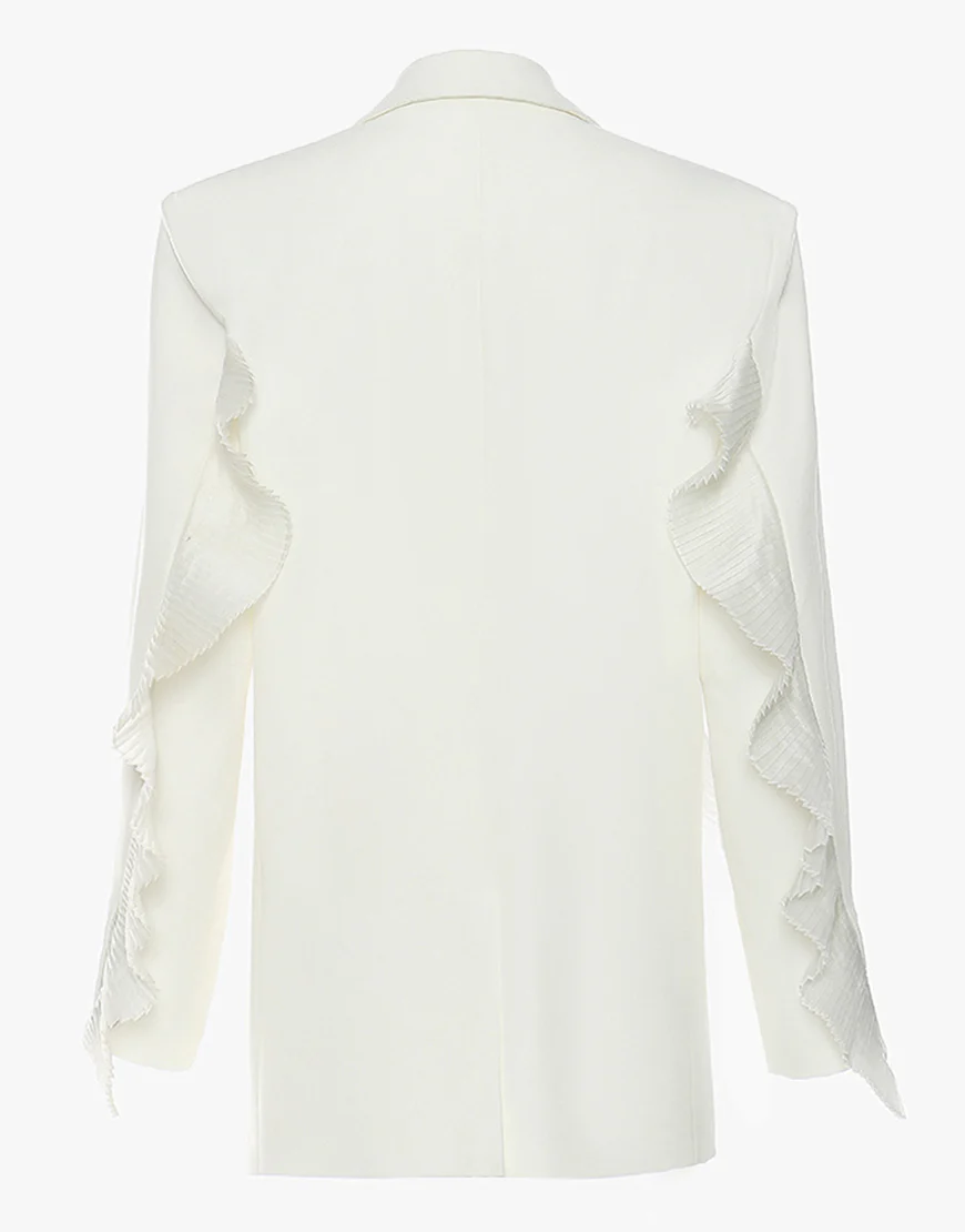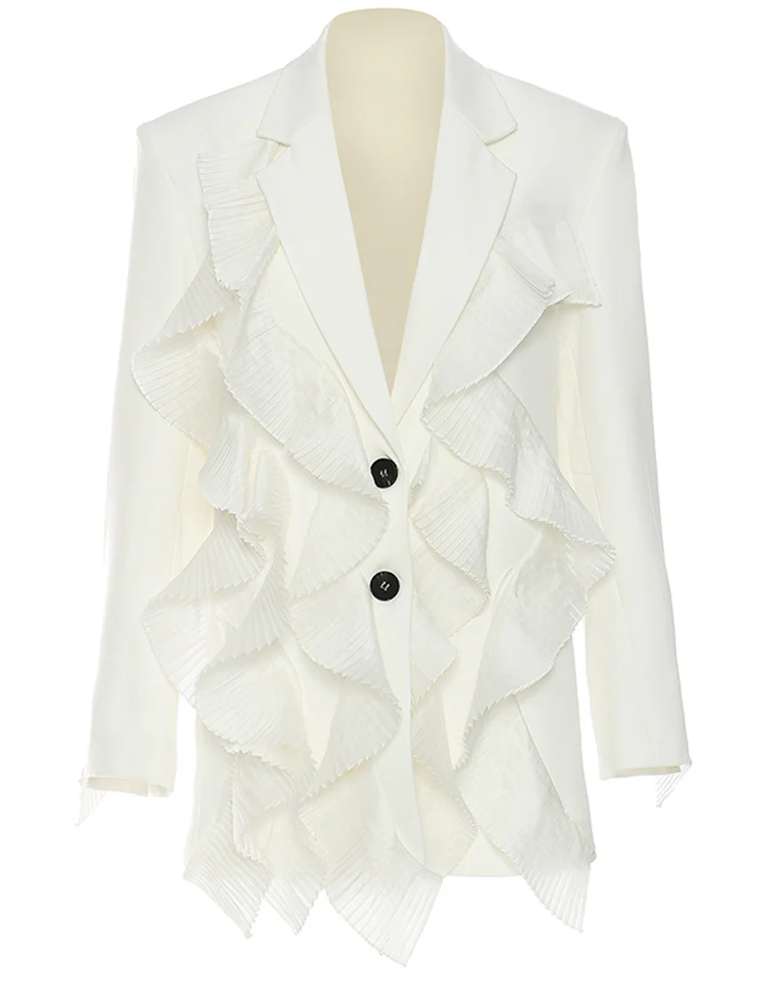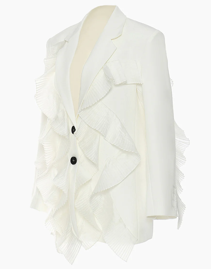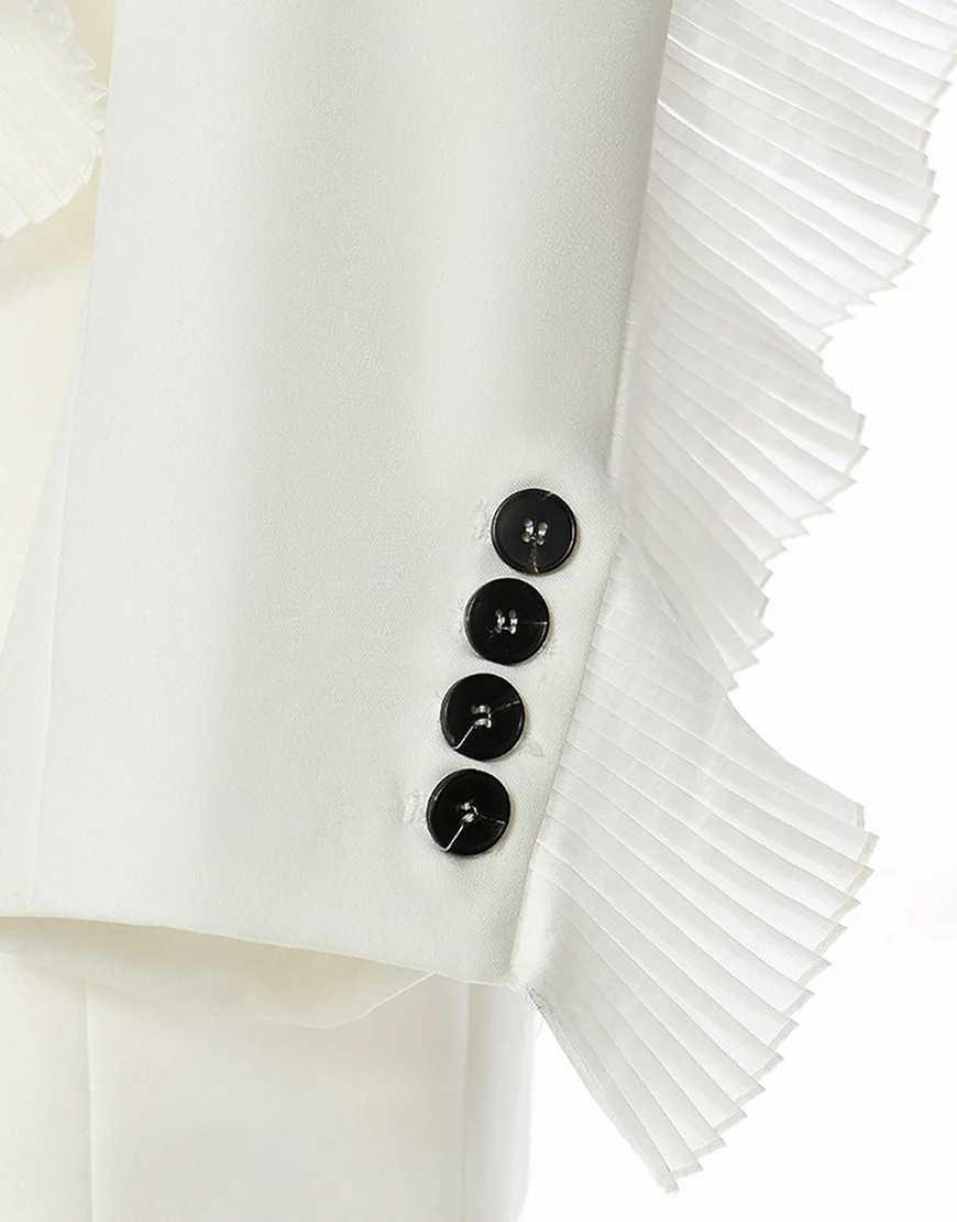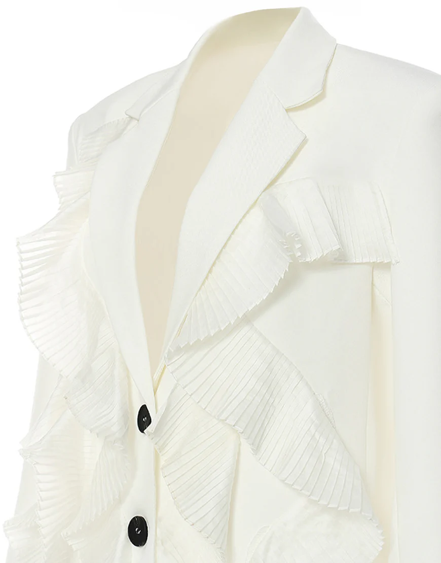 La veste féminine comprend une rangée de boutons élégants, un revers en dentelle blanche et un jabot pour une touche de sophistication. Ses revers échancrés ajoutent une allure moderne. Parfait pour toutes vos occasions spéciales, cette veste apportera une note de féminité et d’élégance à toutes vos tenues.
