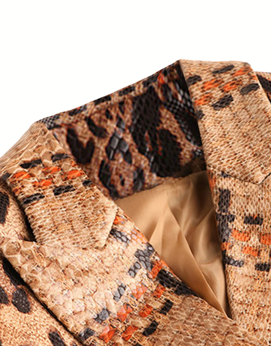 Soyez le premier à laisser votre avis sur “Veste femme ajustée moulante, à revers pointus en satin léopard, avec une seule boucle”