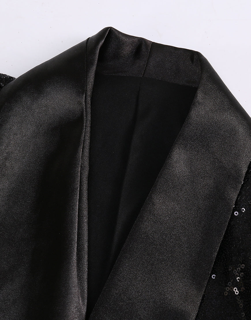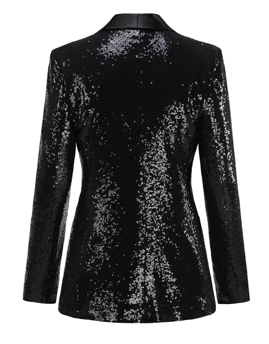 Blazer féminin ajusté moulant, avec revers pointus blancs, double boucle et décorations en cristaux