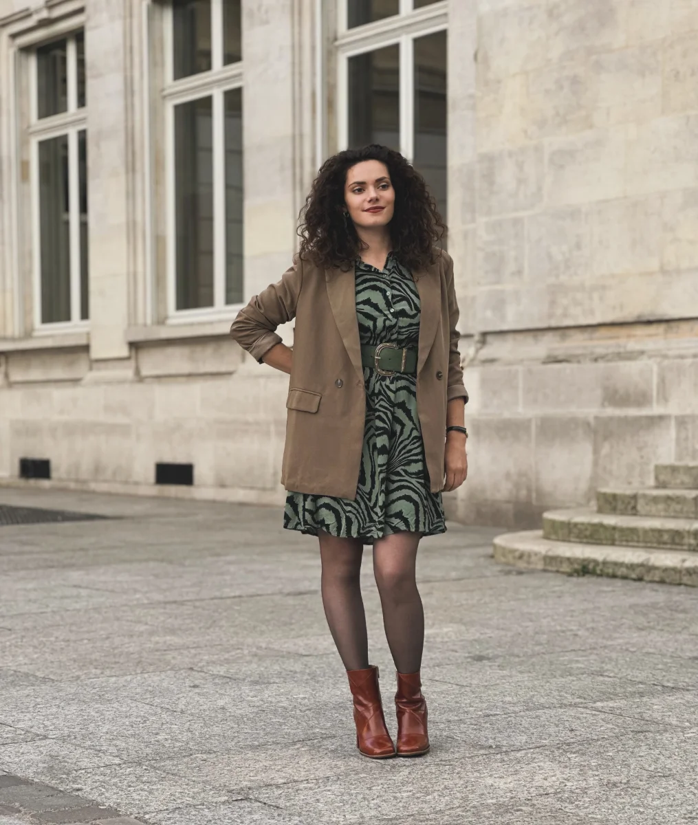 Intemporelle et chic, cette veste est parfaite pour la saison Veste de blazer unie olive ou à carreaux Manches longues et boutons à l’avant Matières principales : 96% POLYESTER, 4% ELASTHANNE Existe aussi en coloris noir sur le modèle Bertha