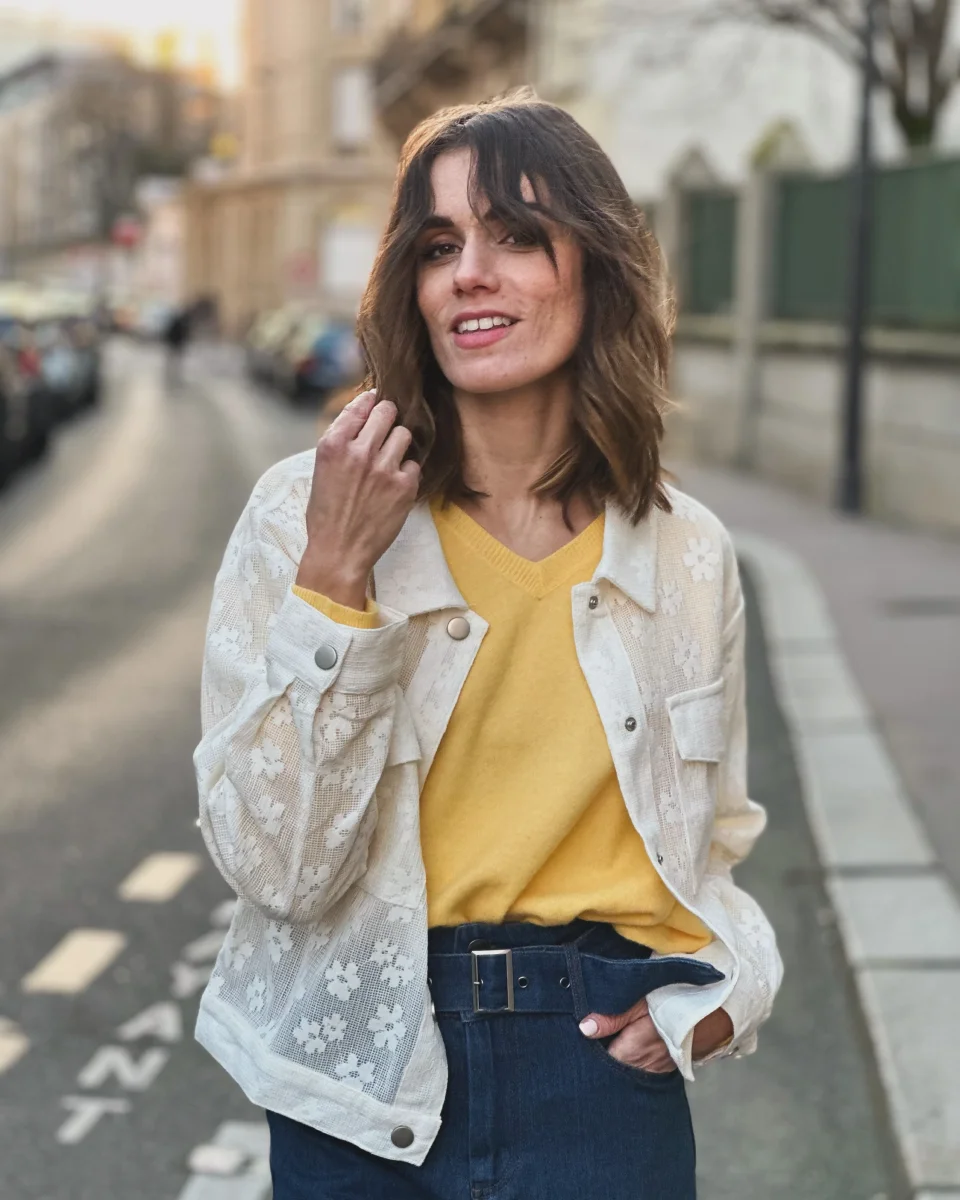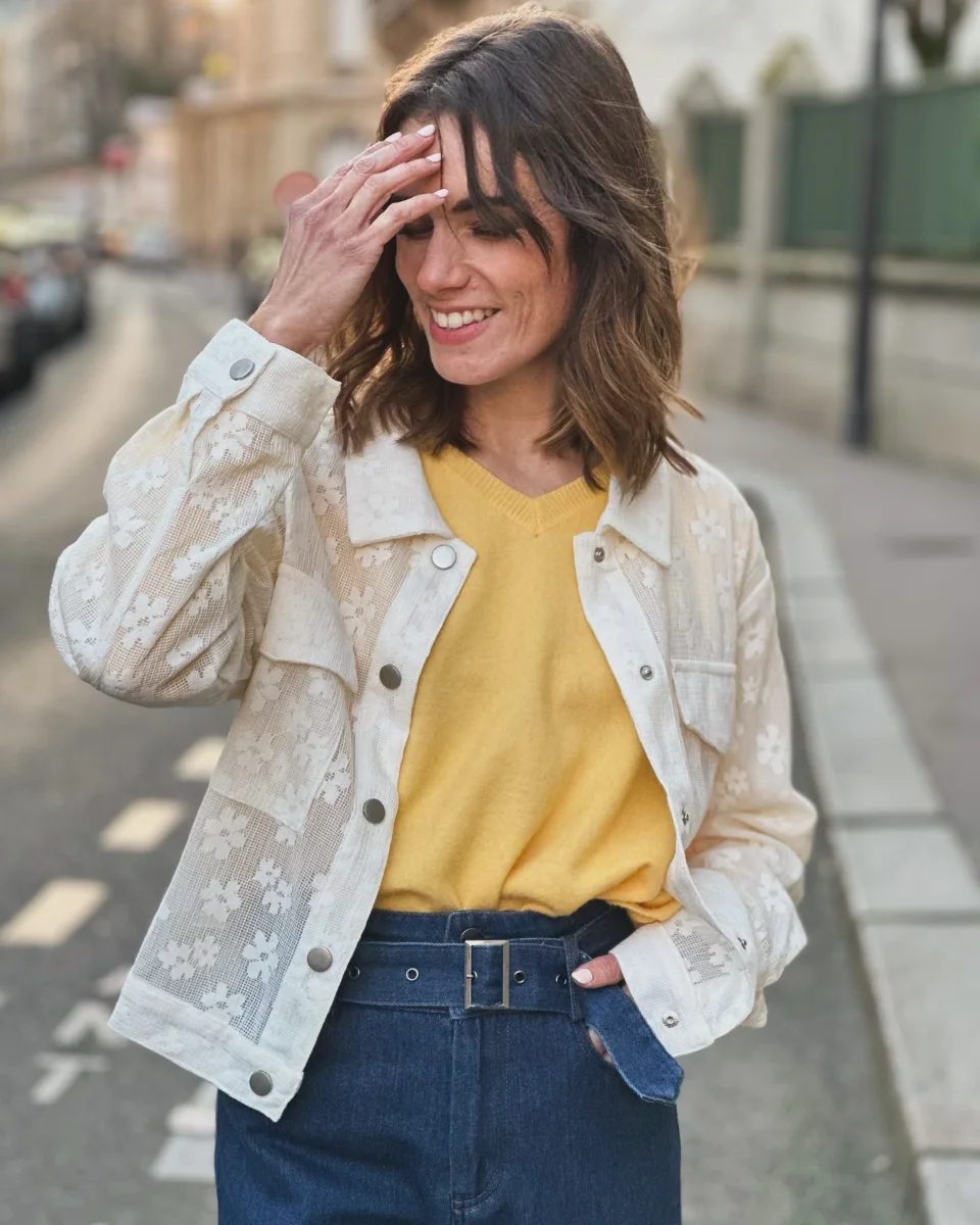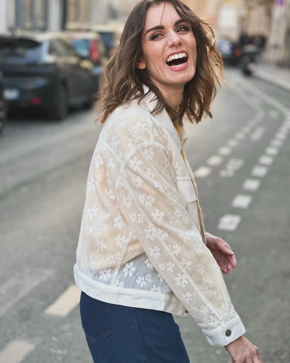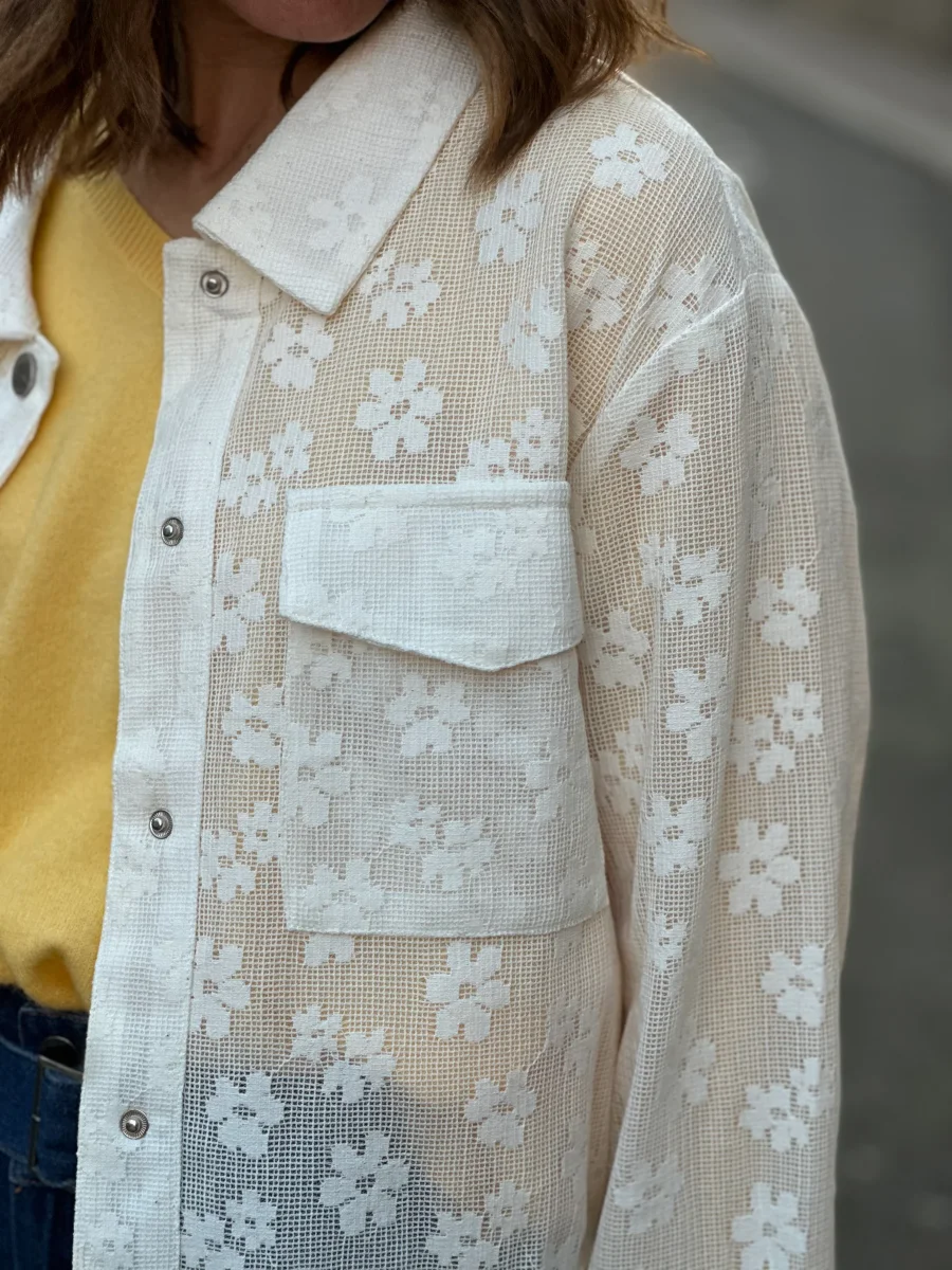 Veste fine transparente florale Style ajouré romantique 100% Polyesther