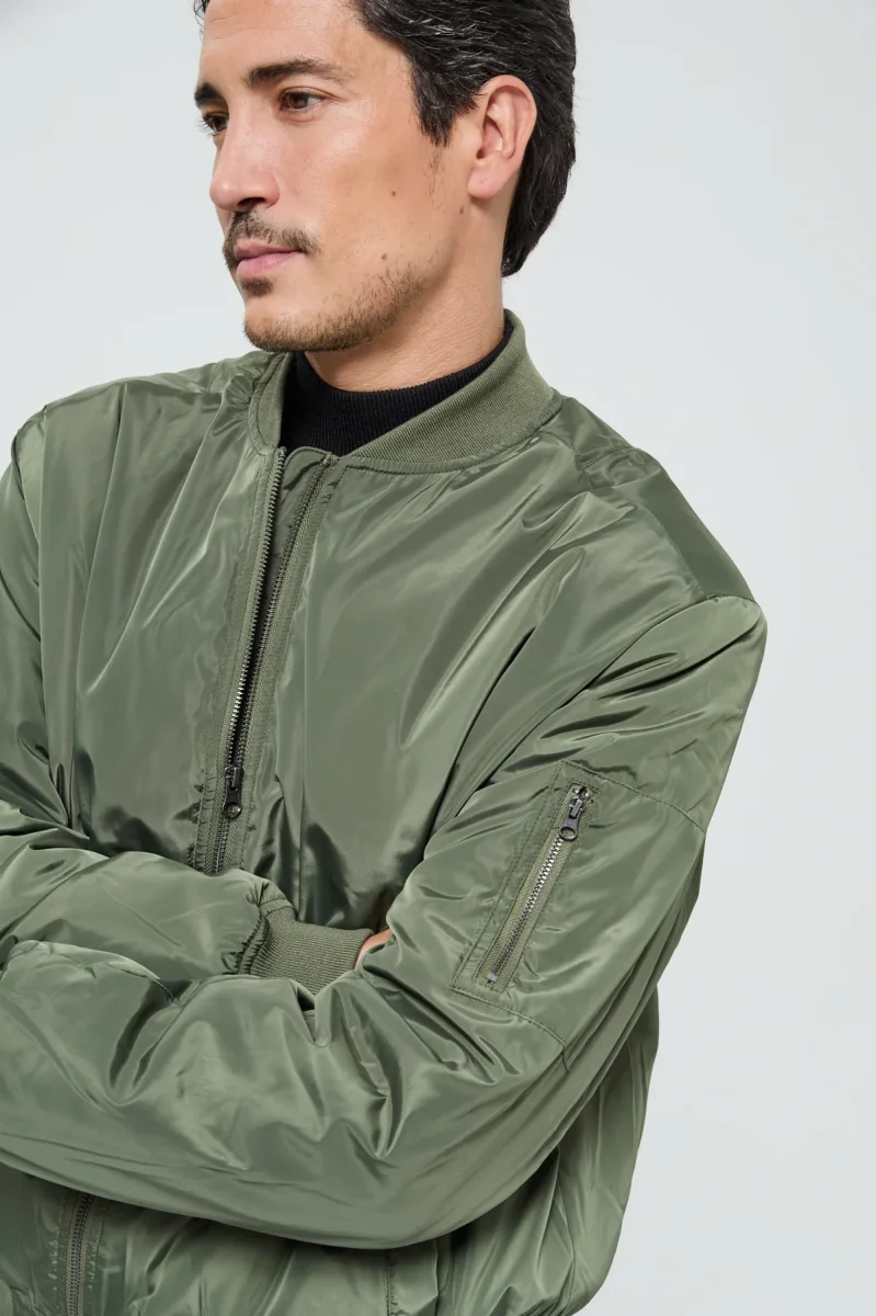 Bombers homme confectionné en 100% polyamide, il séduit par sa légèreté, sa résistance et son confort au quotidien, idéal pour la mi-saison ou les journées plus fraîches.